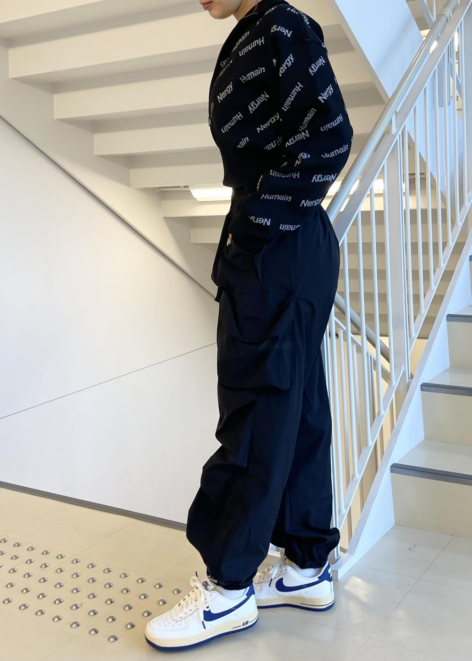 ショート丈でウエストが細くなっているデザインなので、足が長くスッキリ見えます◎