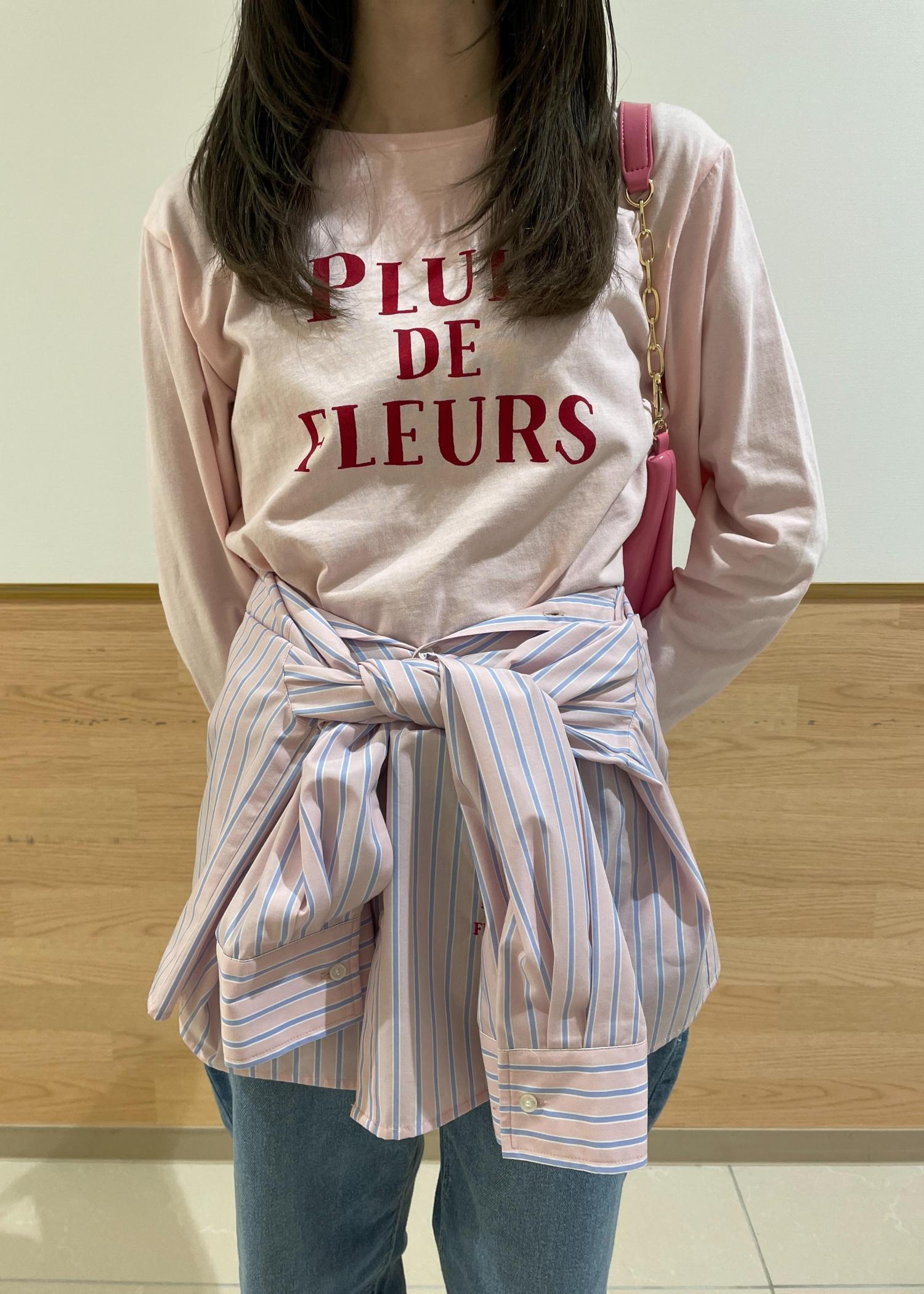 可愛いピンクのカットソーにストライプのブラウスの相性抜群で可愛かったです◎