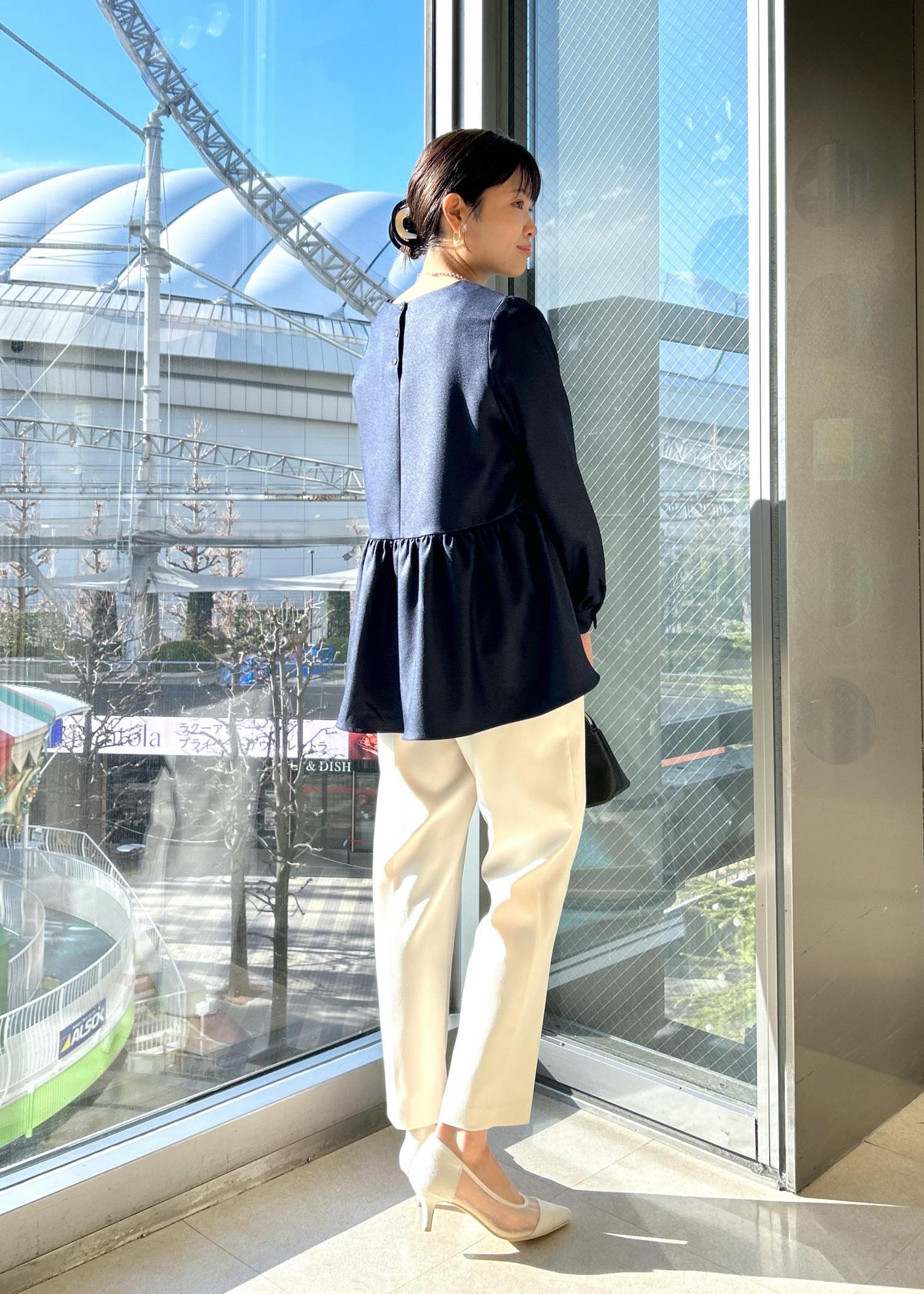 セットアップアイテムを色違いで合わせました! アイボリーのパンツが爽やかな印象にしてくれます◎