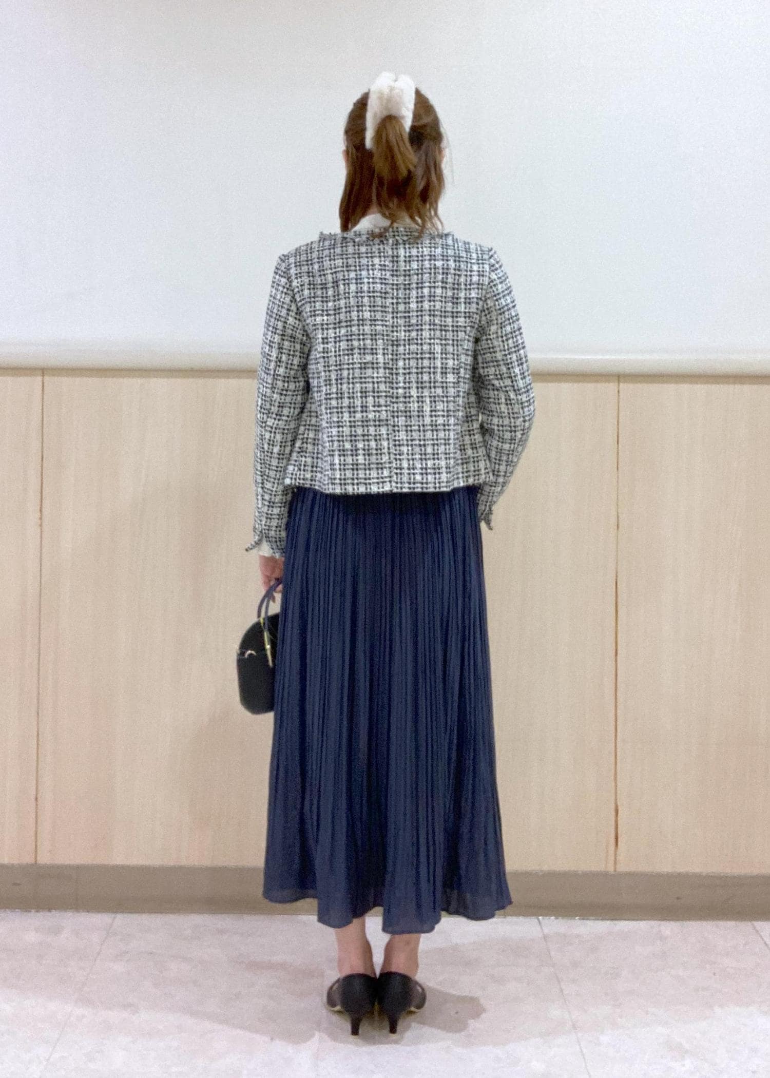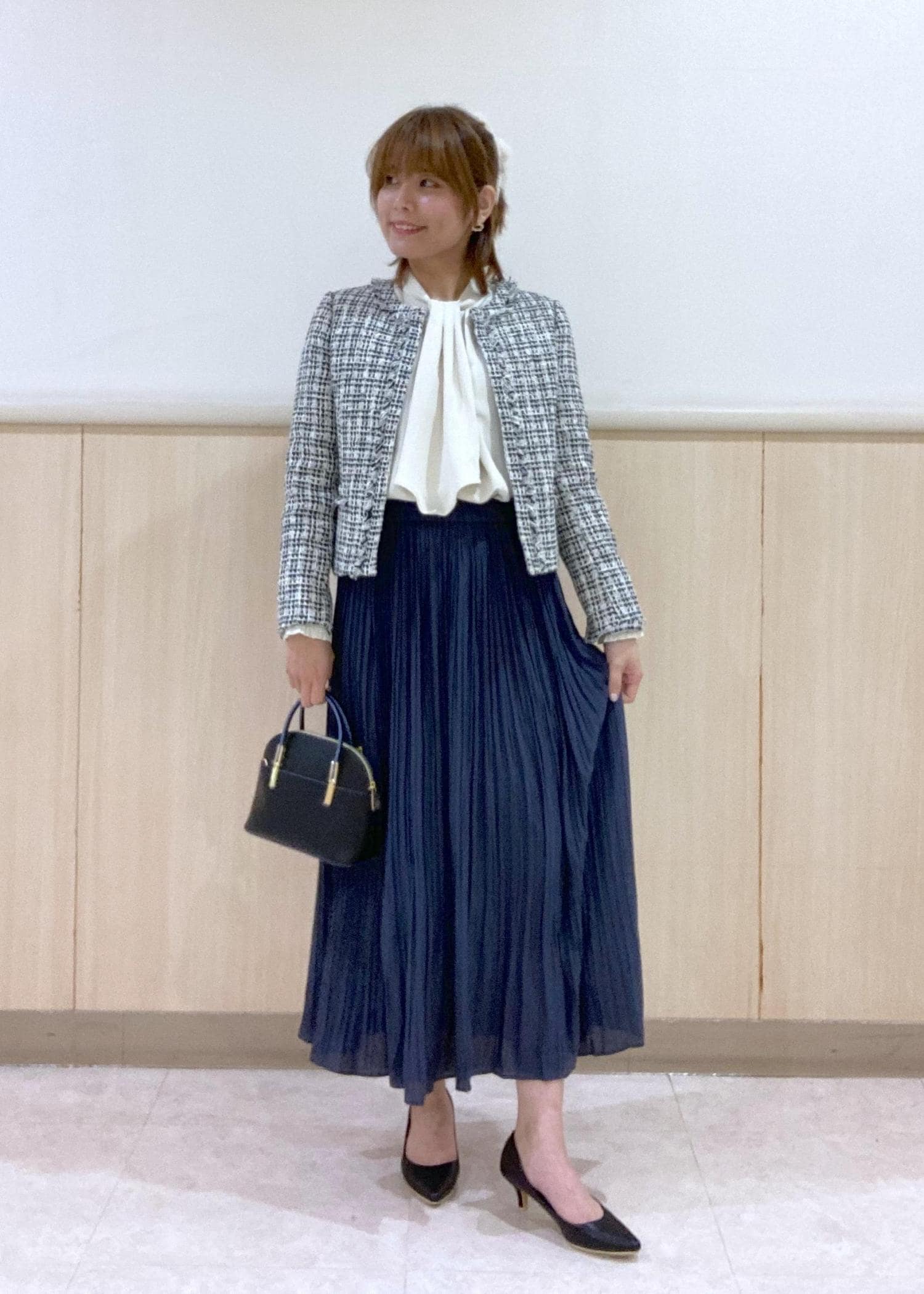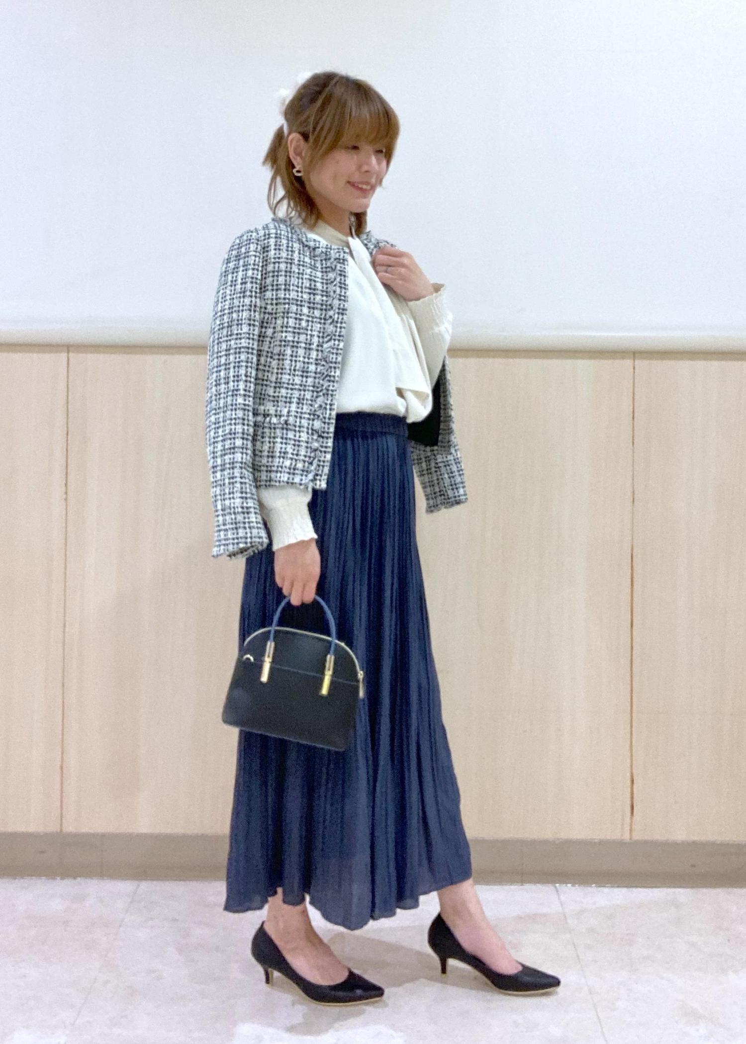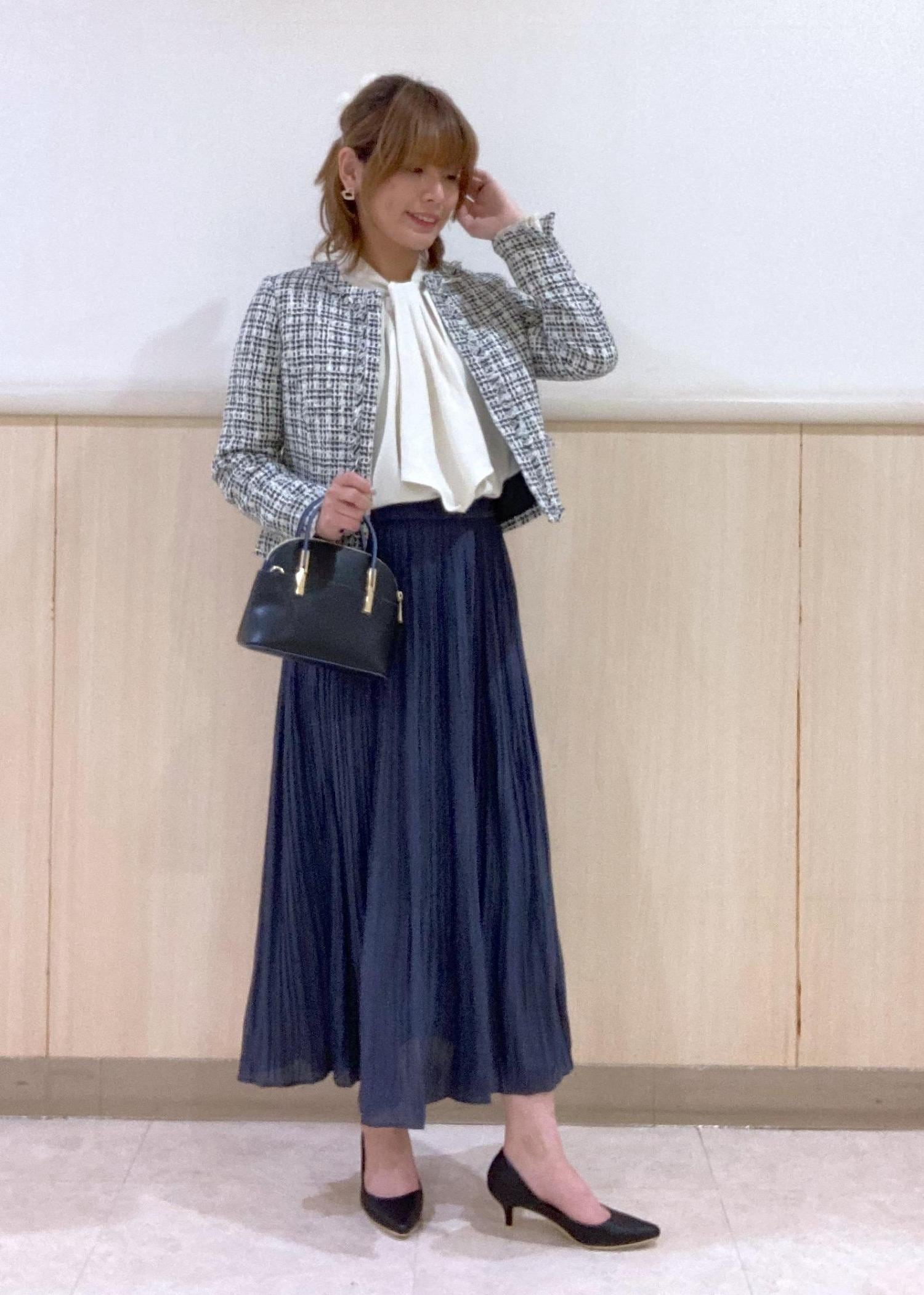 ツイードジャケットにスカートを合わせたセレモニーにもオススメのコーデです! それぞれ単品でも使いやすいアイテムです♪