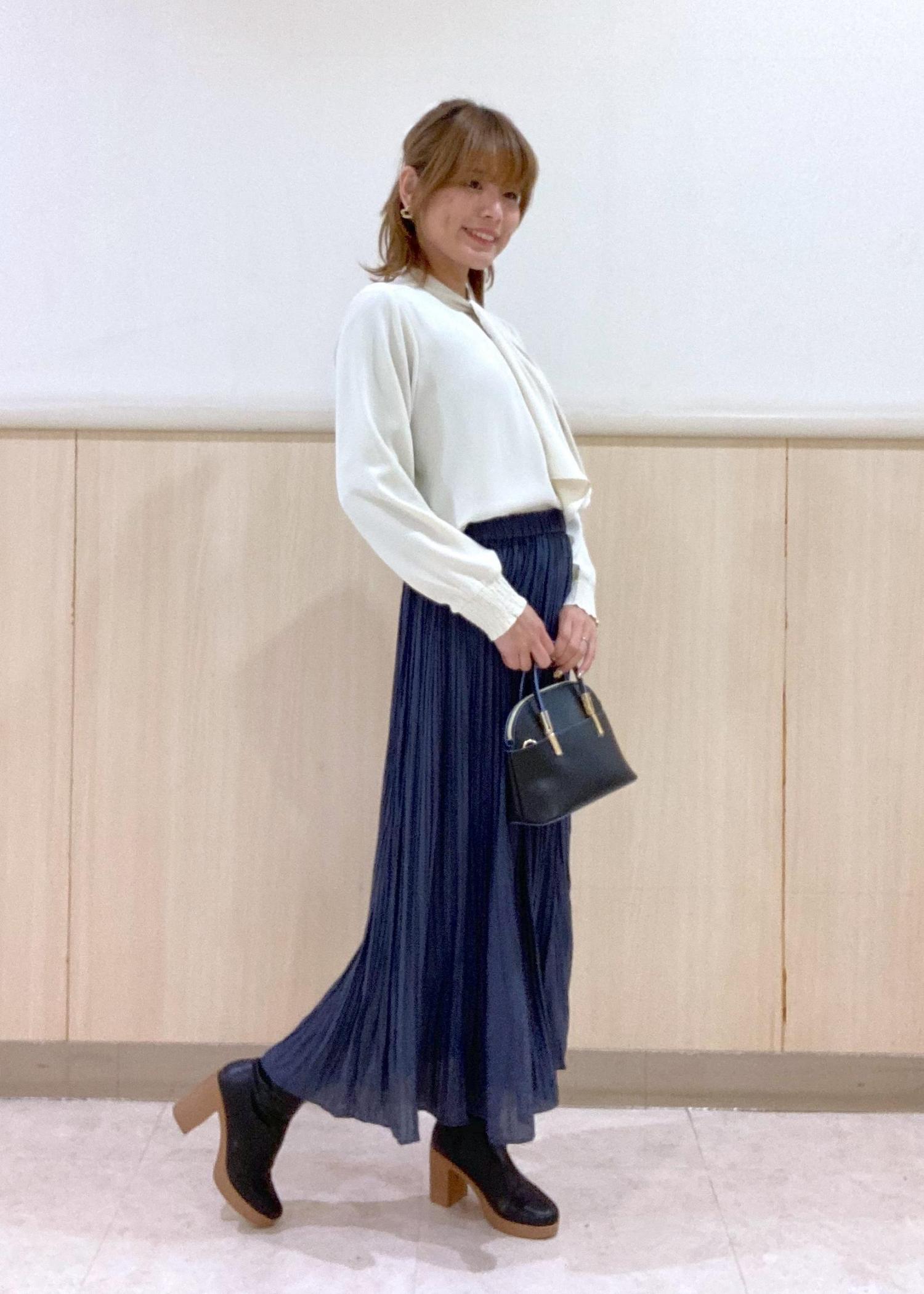 ブラウス×プリーツスカートの綺麗めコーデにミドル丈ブーツを合わせた冬の綺麗めコーデ!