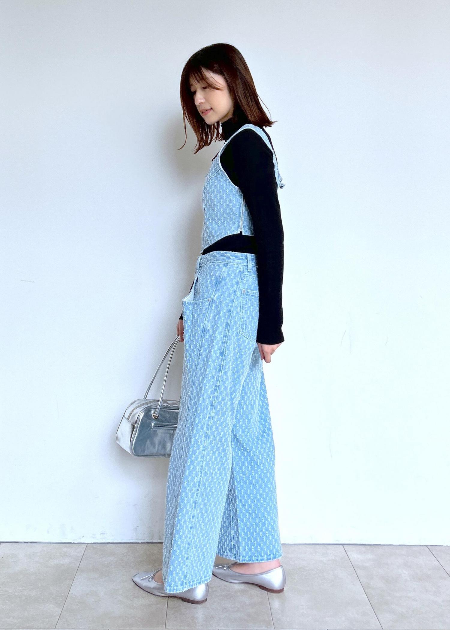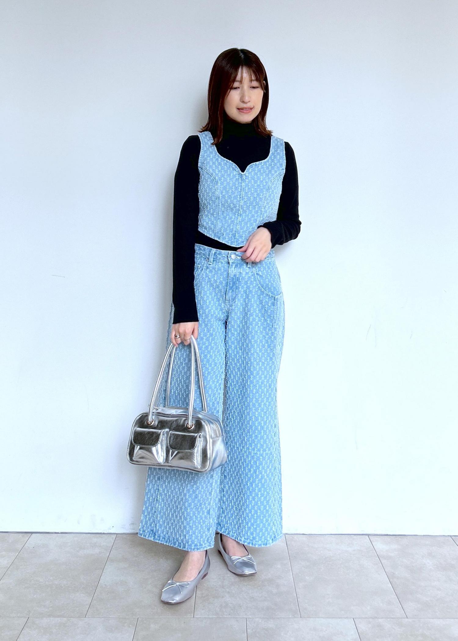 春に欠かせないデニムはセットアップでお洒落に。 インナーや雑貨はシンプルなアイテムをチョイスして、大人女子にぴったりなコーデです。