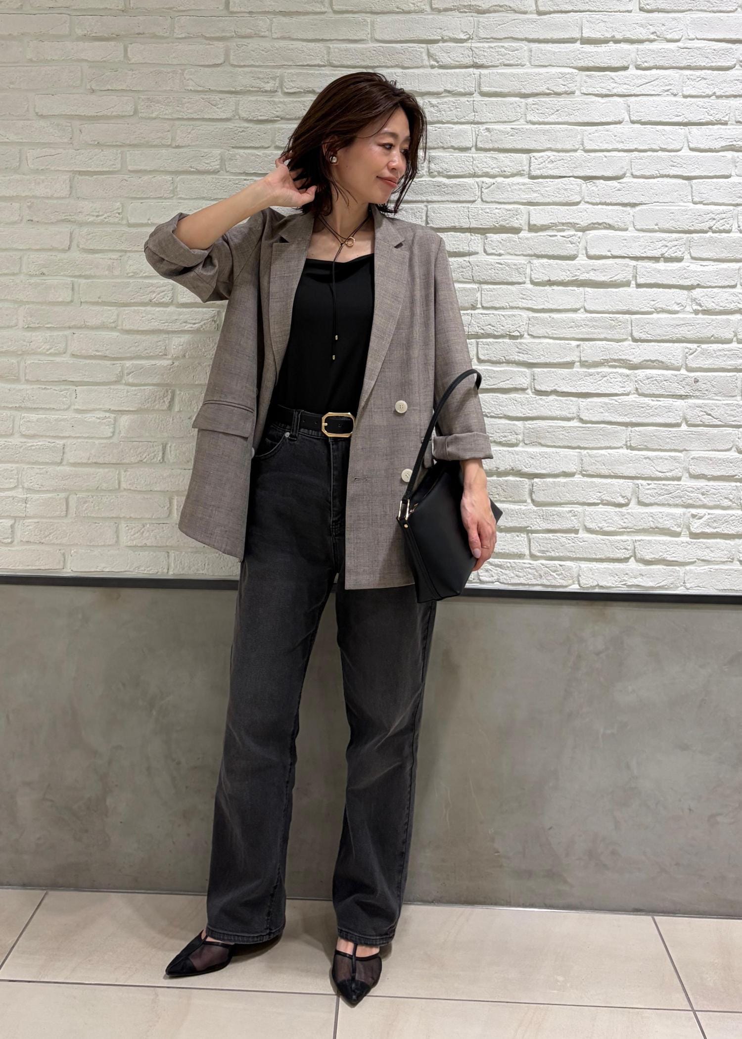 淡いカラーにモノトーンコートを合わせて 冬っぽさと春っぽさが出せるコーディネートです。