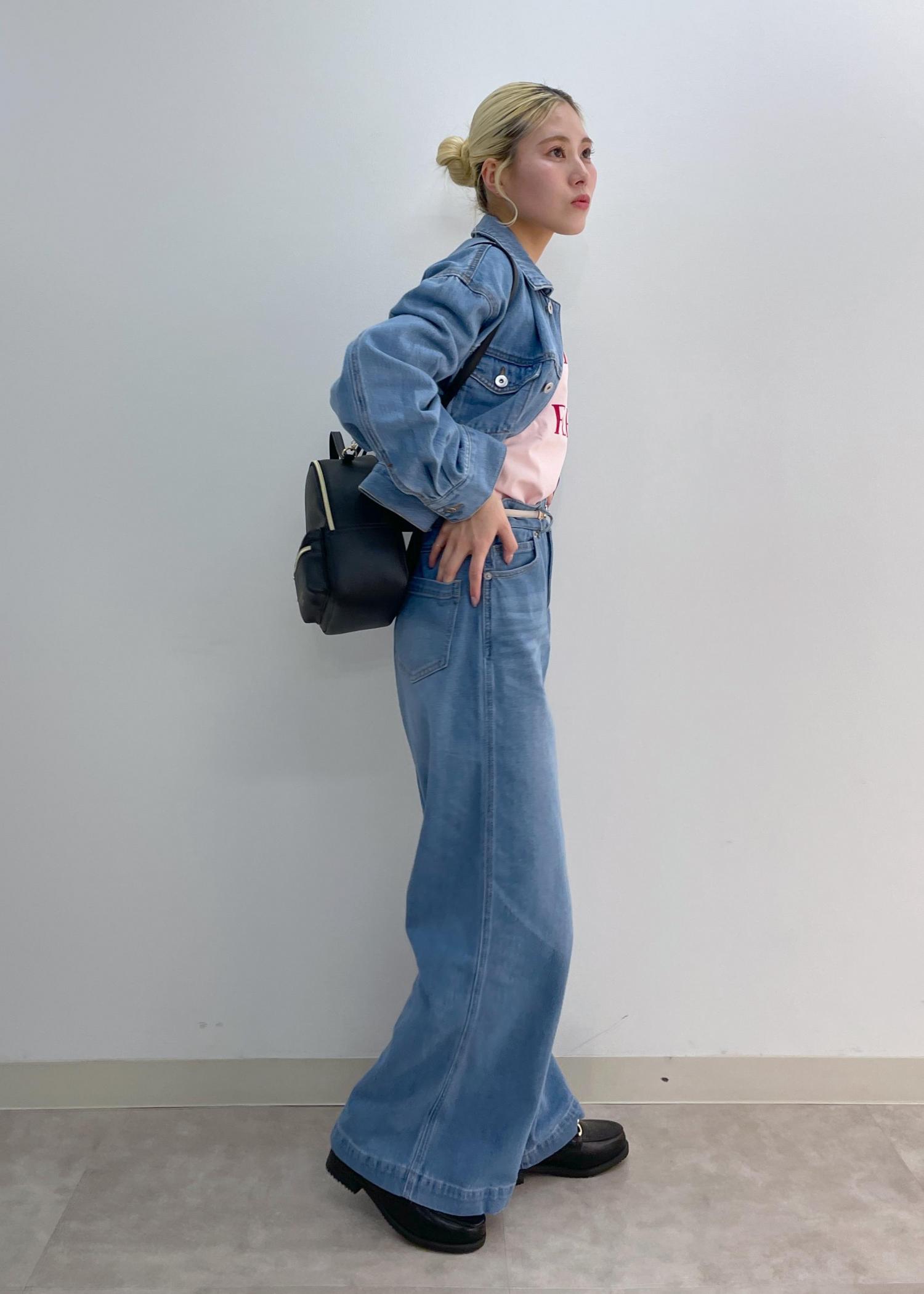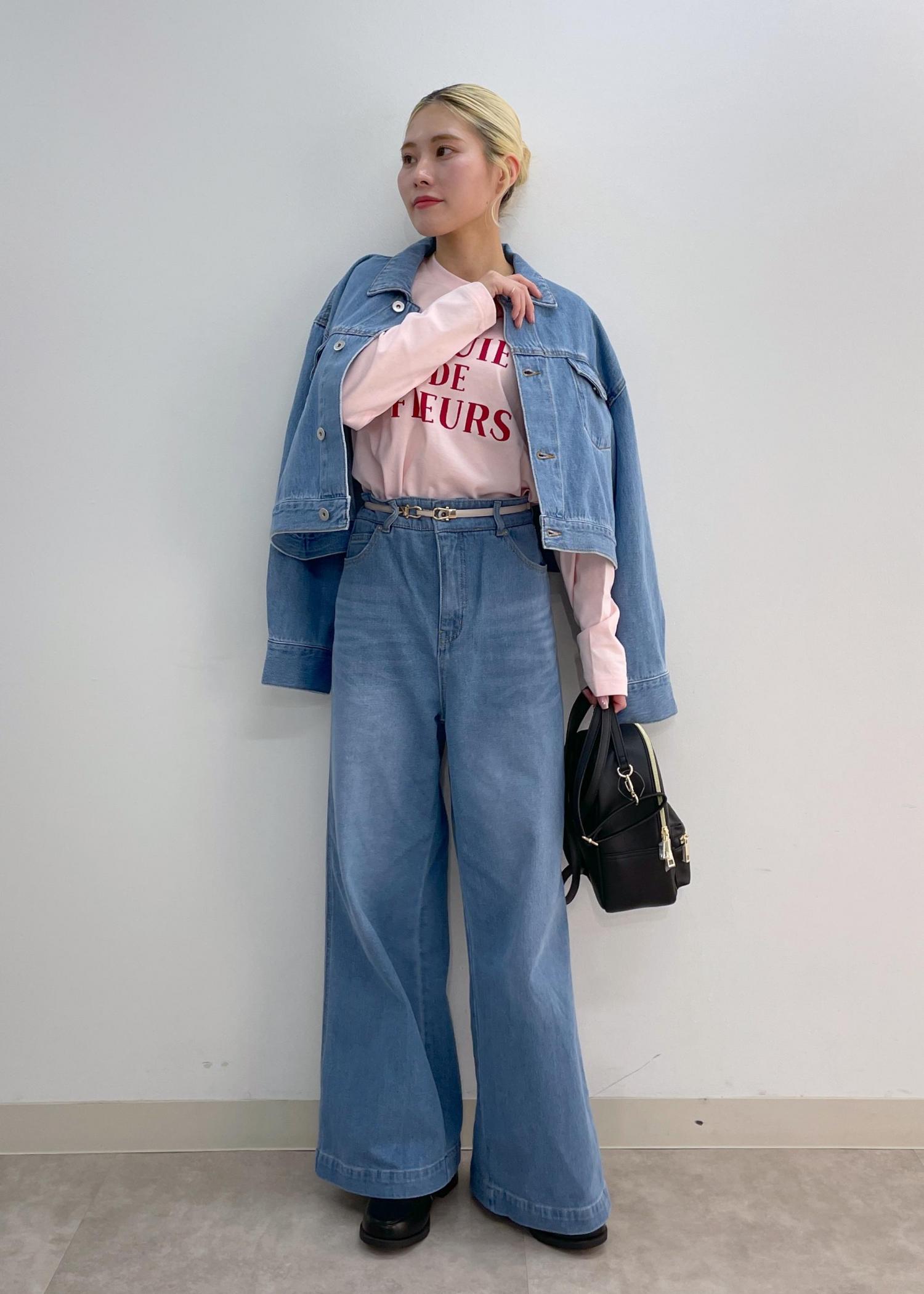 デニムオンデニムでカジュアルに♪♪ インナーにピンクを合わせて可愛さもプラスしてコーディネートしてみました!