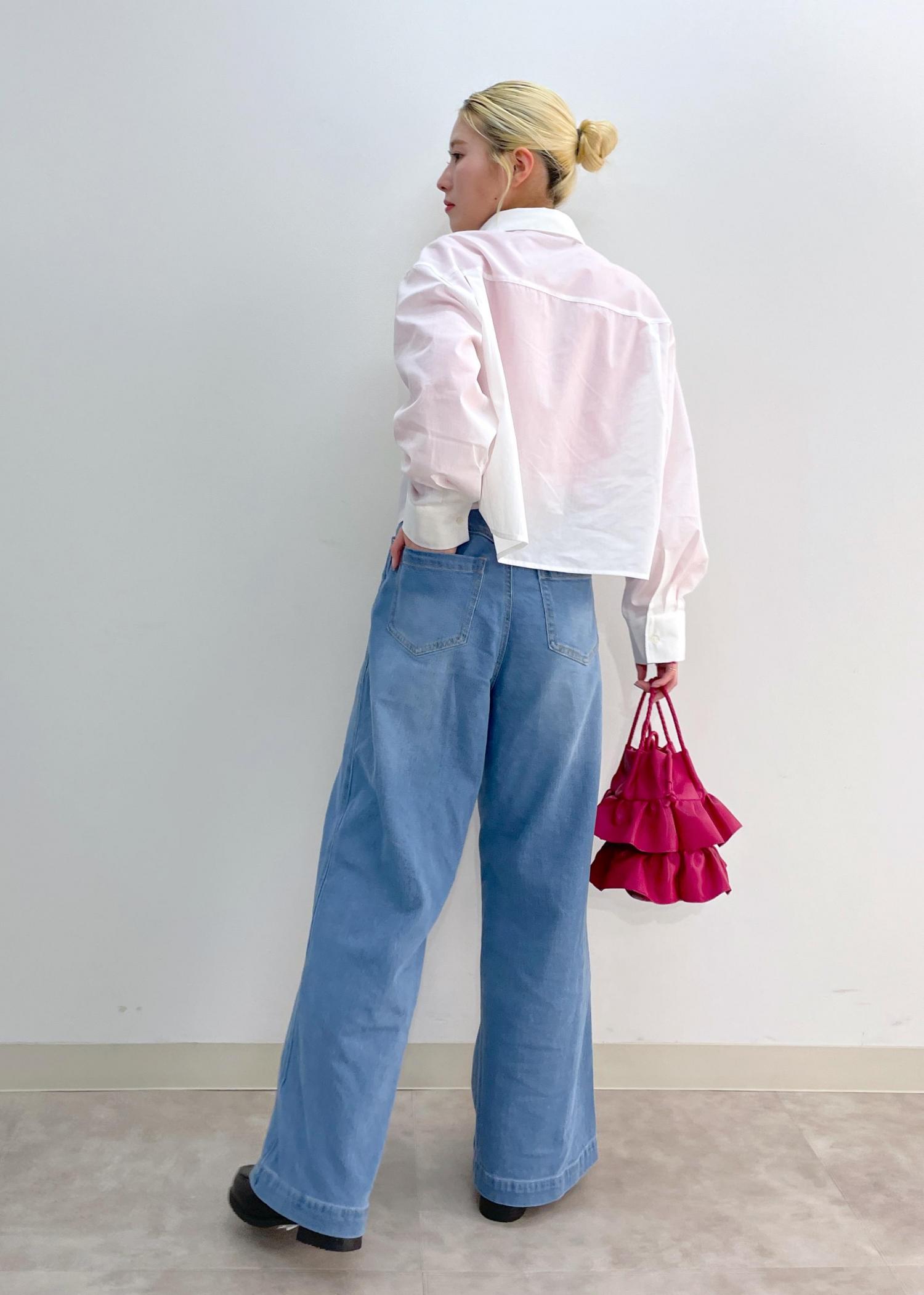 白とブルーデニムにトレンドカラーのピンクを合わせてコーディネートしてみました!