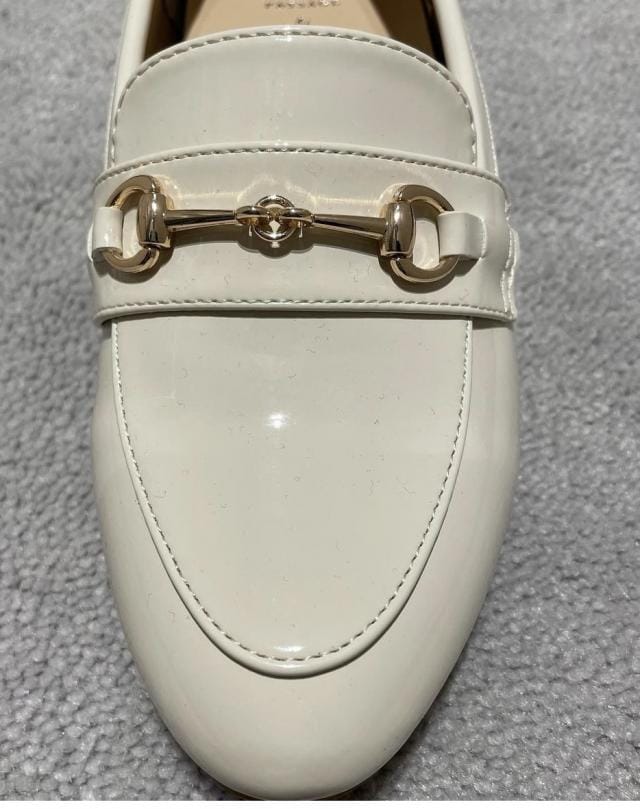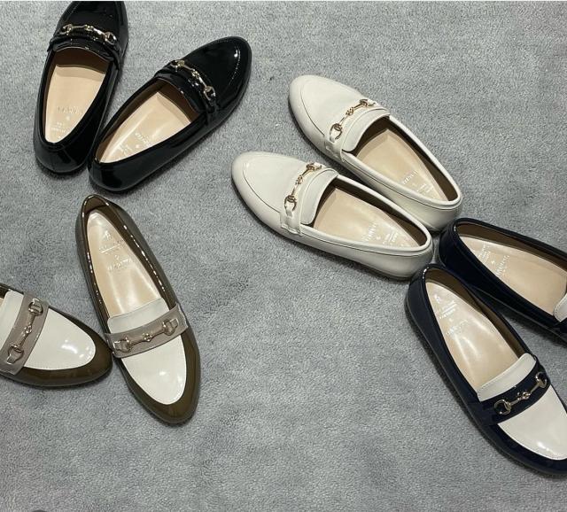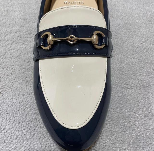 インソールに厚みがあり足が痛くなりにくい、オンオフ使えるビット付きローファー。