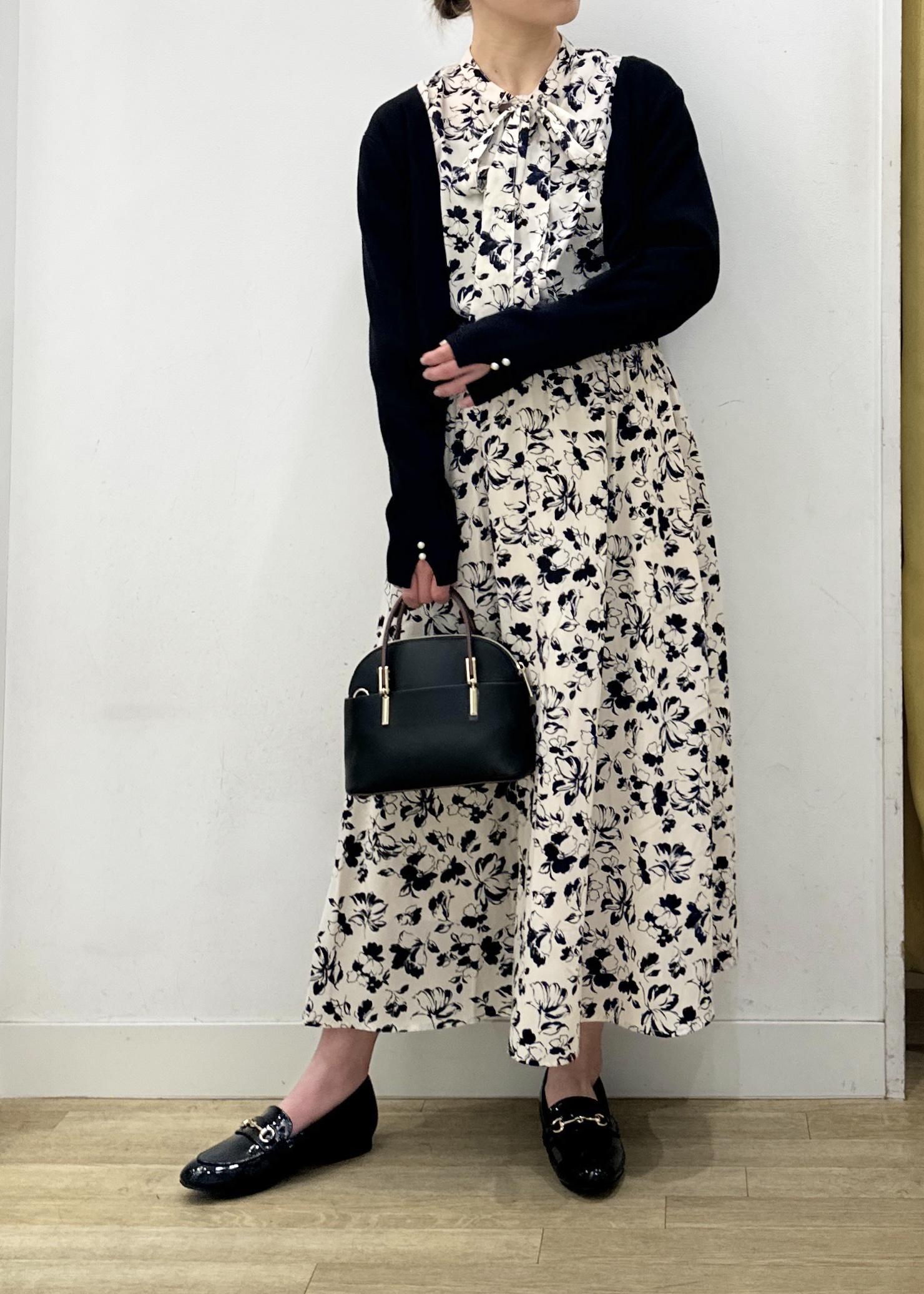 カーディガンもブラックに統一してよりシックな大人ワンピーススタイリングに仕上げました☺︎