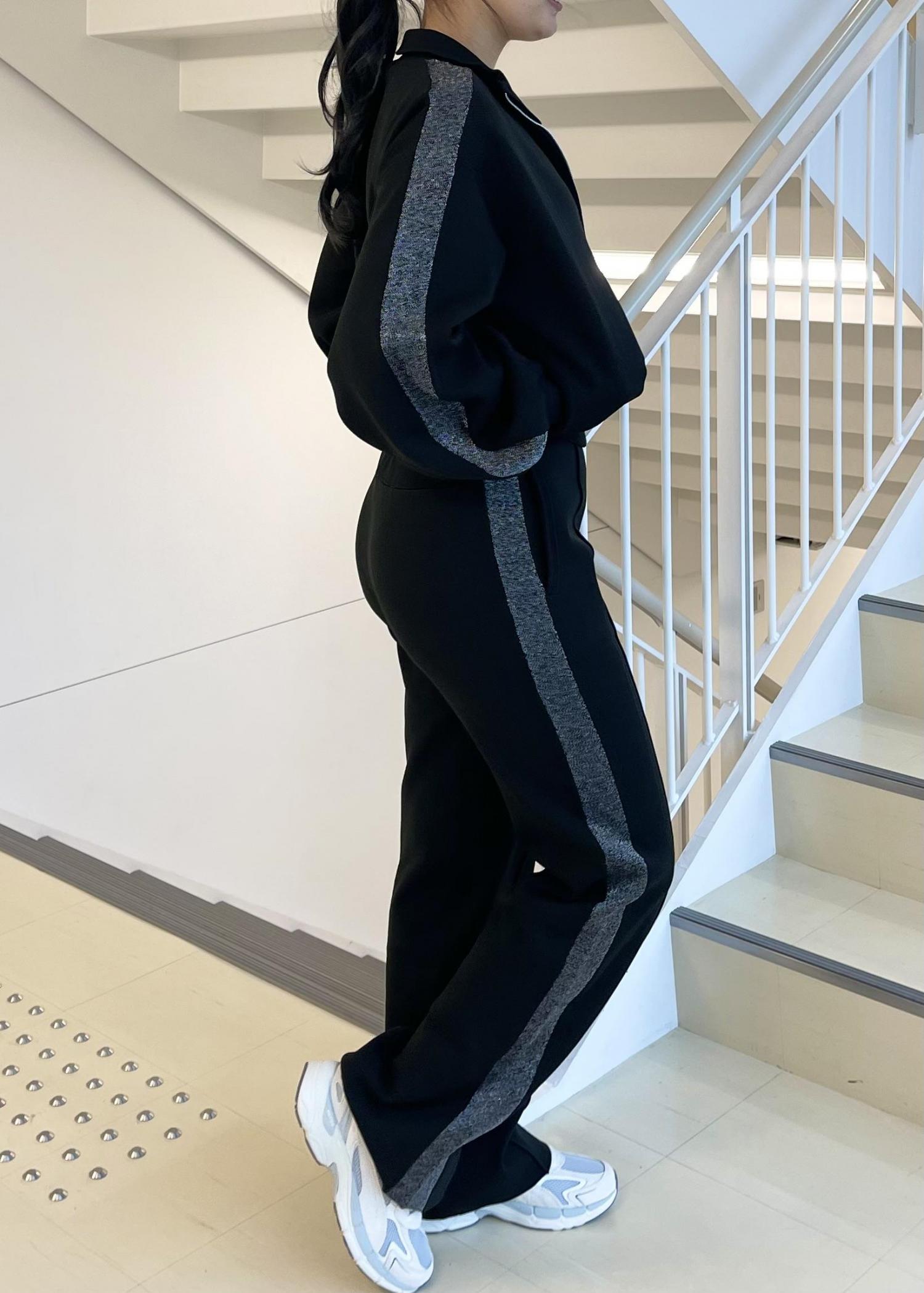 アウトレットNERGY【撥水&UV】ラメラインニットトラックジャケットブラック / F¥3,080レビュー164cmFサイズ着用。