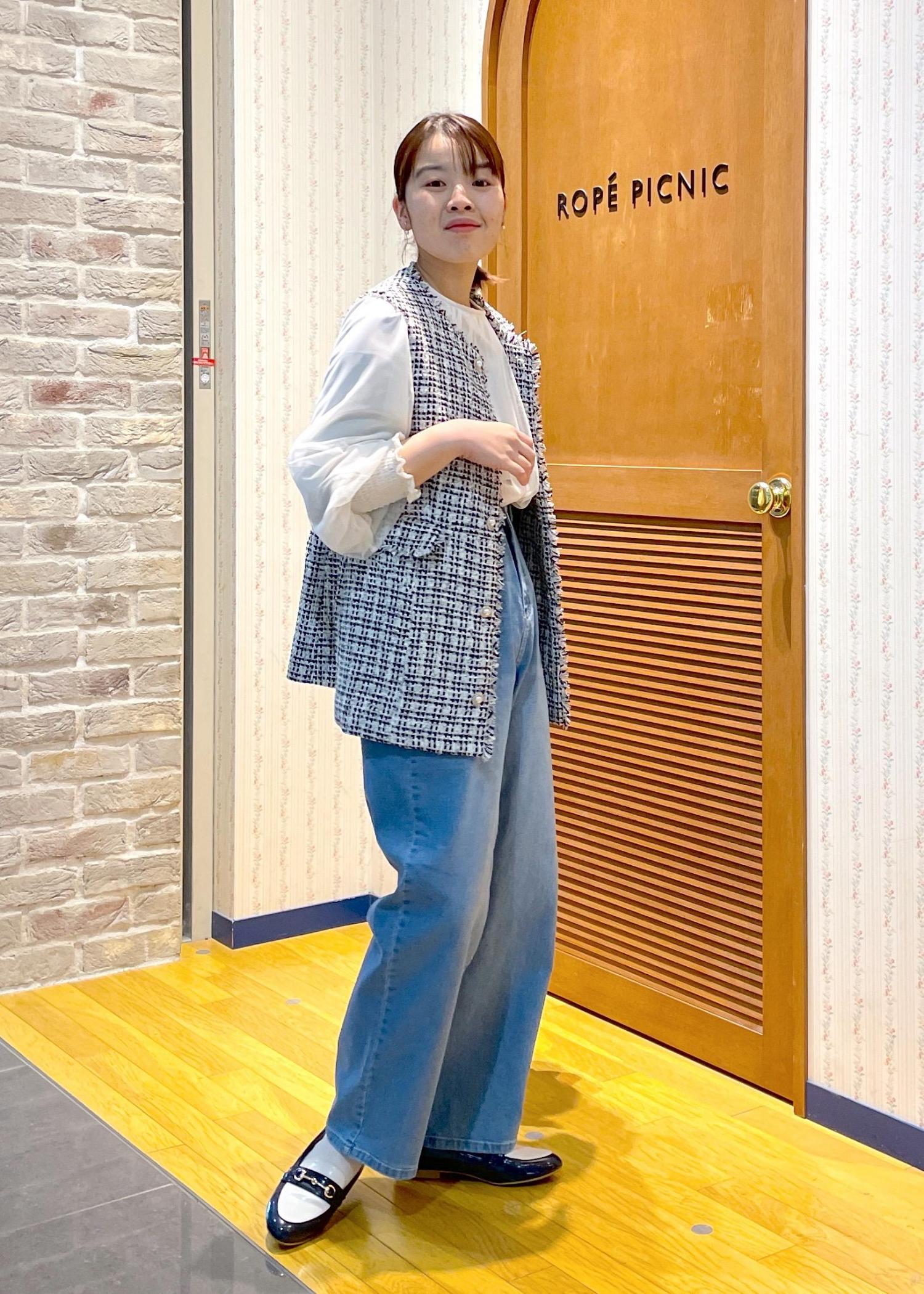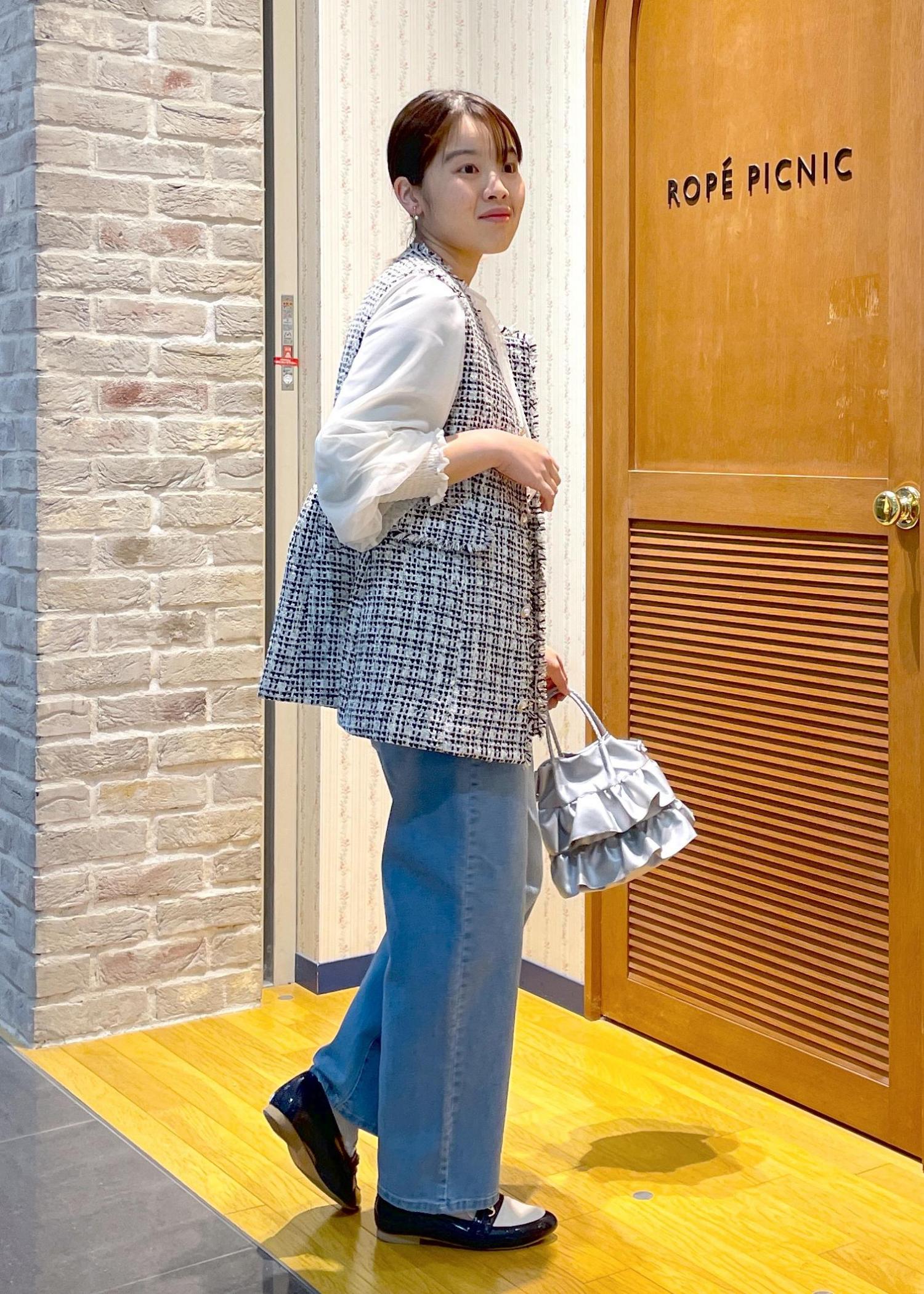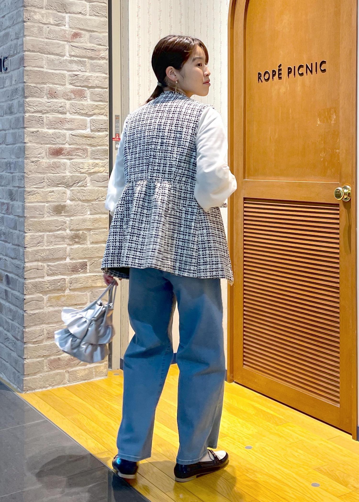 ツイードベストの甘めカジュアル