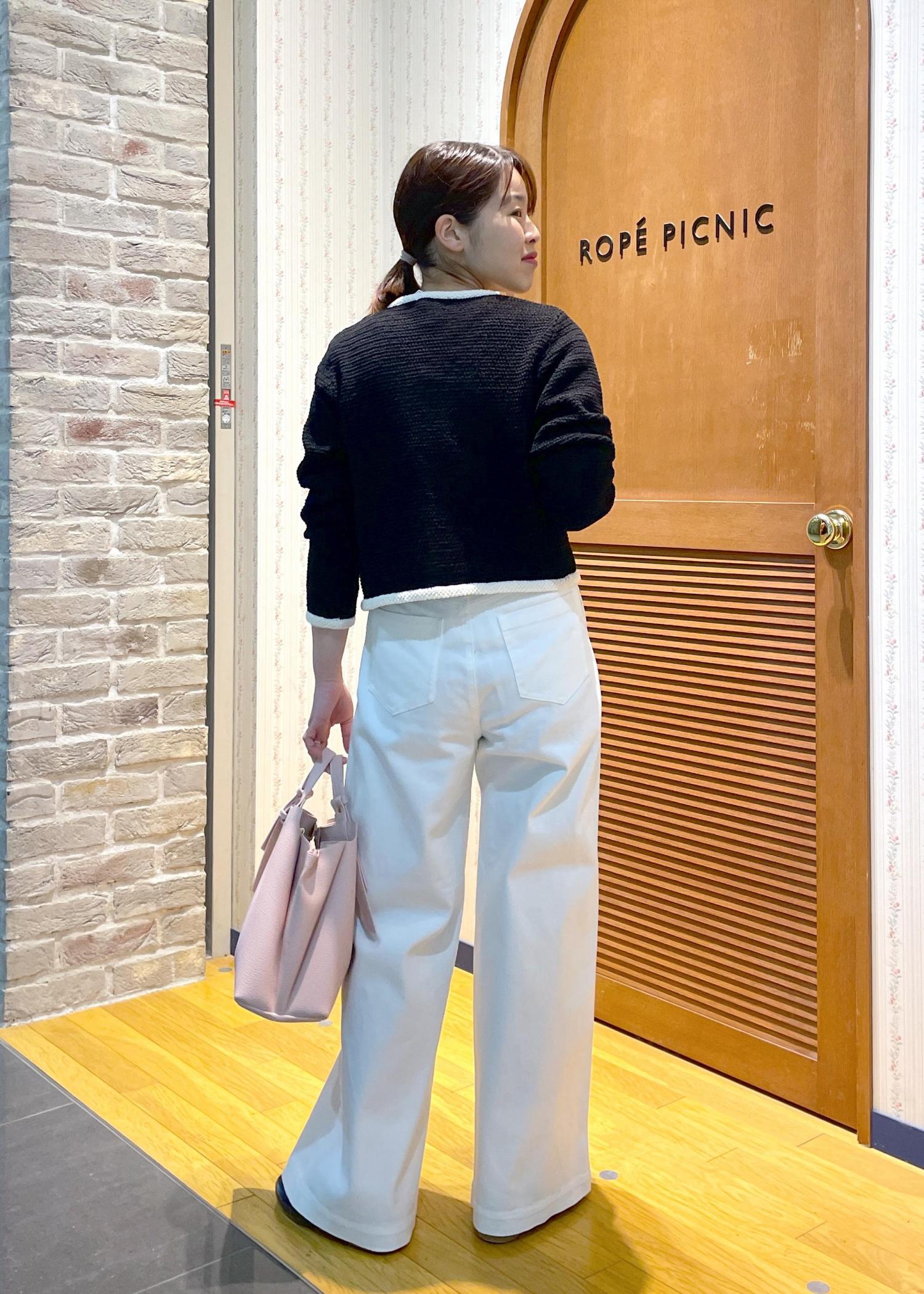 華やかさもあるツイードカーディガンに、爽やかなホワイトデニムを合わせた、きれいめカジュアルスタイルです!