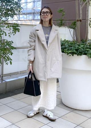 春らしい色味にトレンドのシアー素材インナーのグリーンを足してアクセントにしました☆