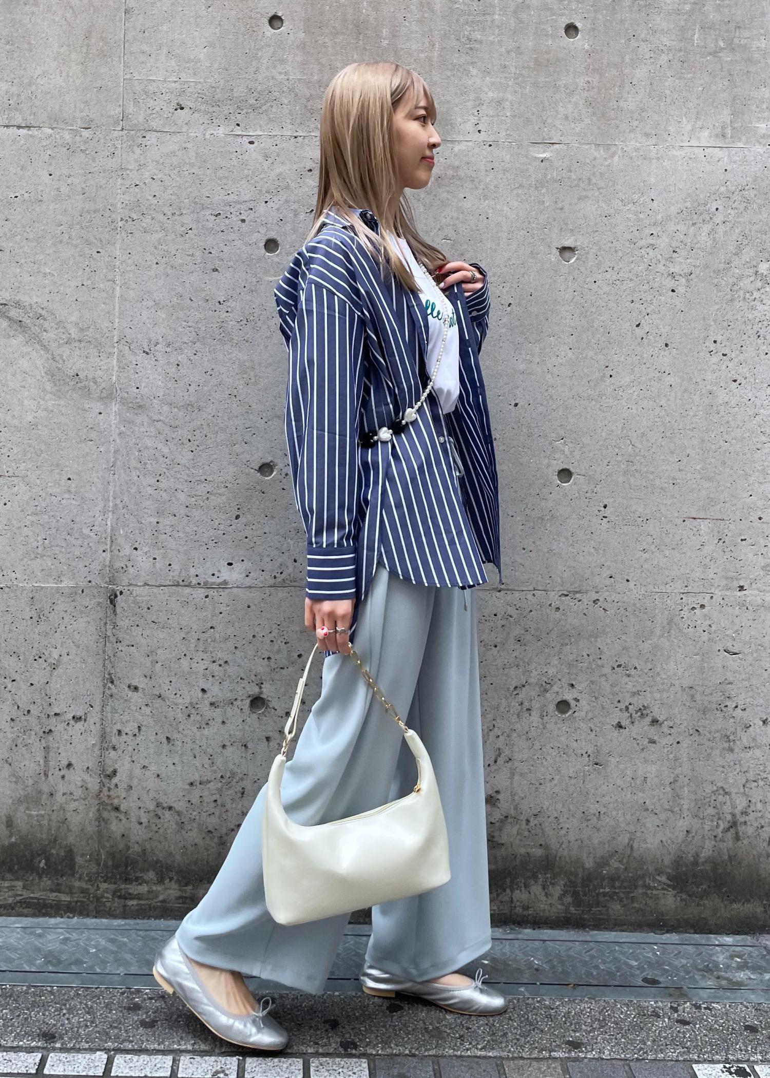 とても動きやすくラフな、春らしいシャツコーデにしました。ブルーを基調とし、爽やかな印象で着られます。