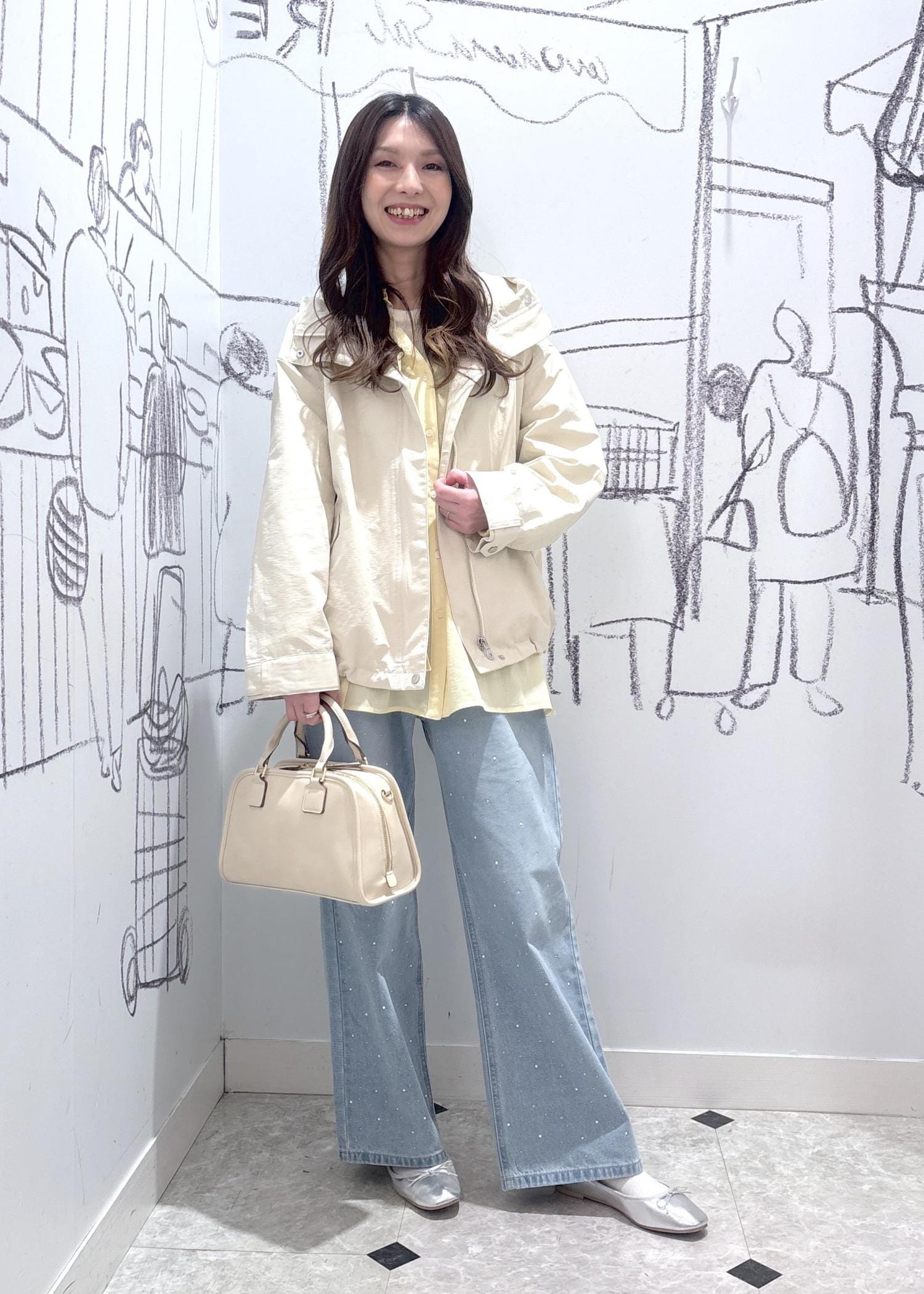 色味は白やネイビー、ライトブルーなどで爽やかさな感じにまとめ、ラメやスパンコールのアイテムでフェミニンな雰囲気もあるコーディネートにしました。