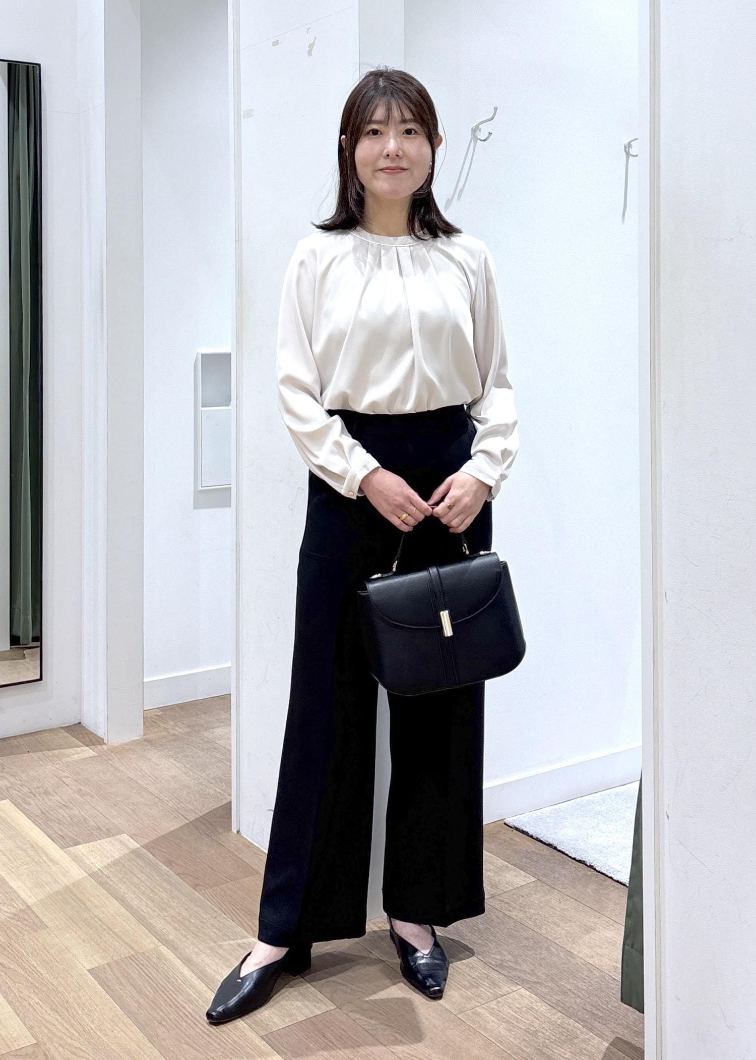 トップスもボトムスもカジュアルアイテムですが シルエットがキレイなので大人っぽく着れます。