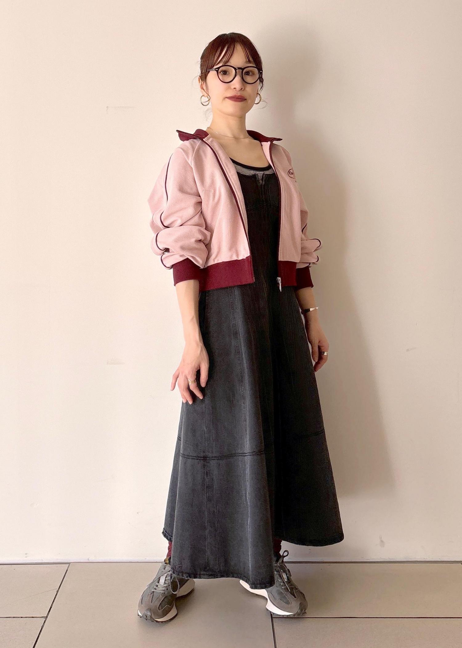 ピンクカラーを可愛くなりすぎない様に小物をポイントにスタイリングしました。
