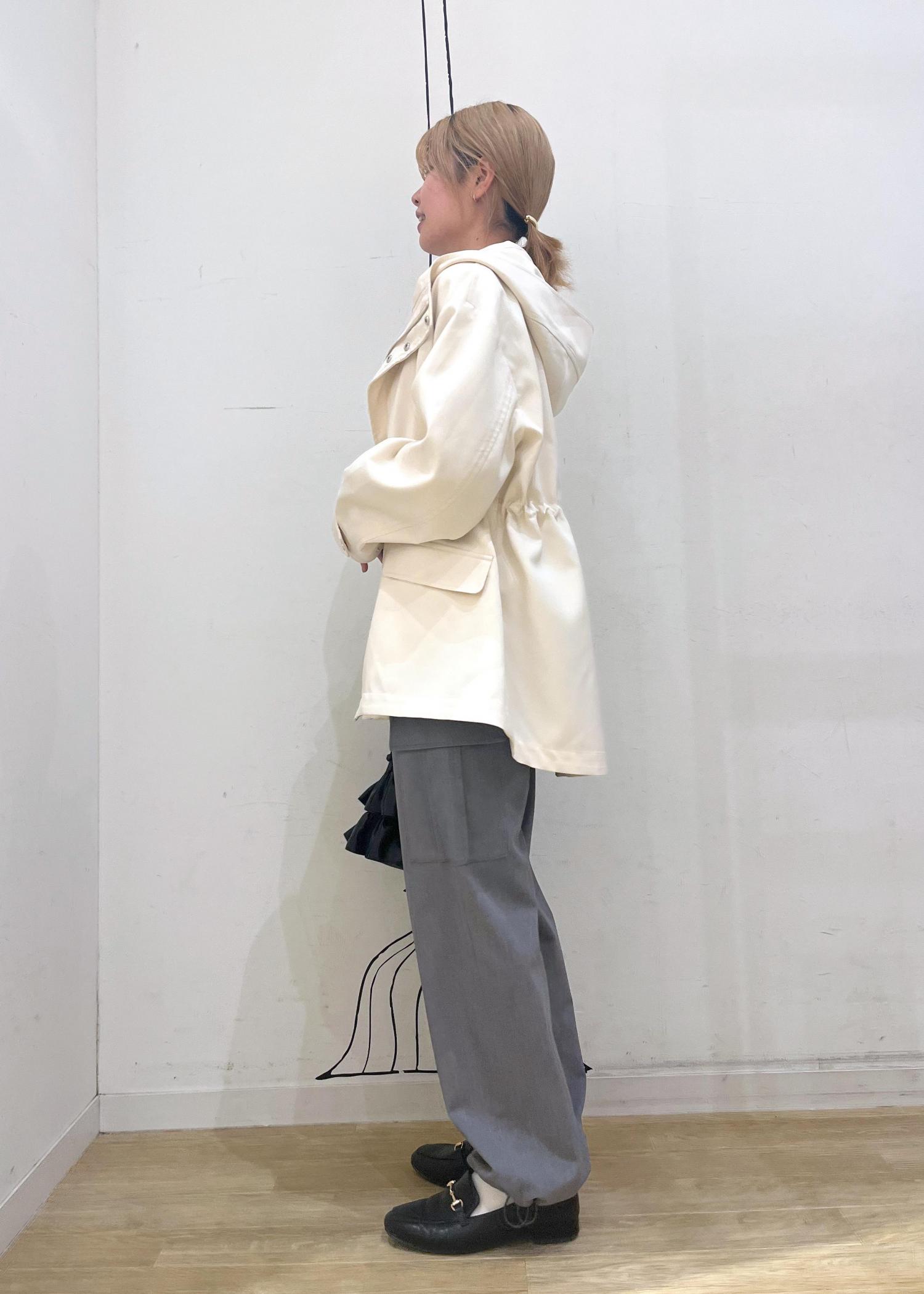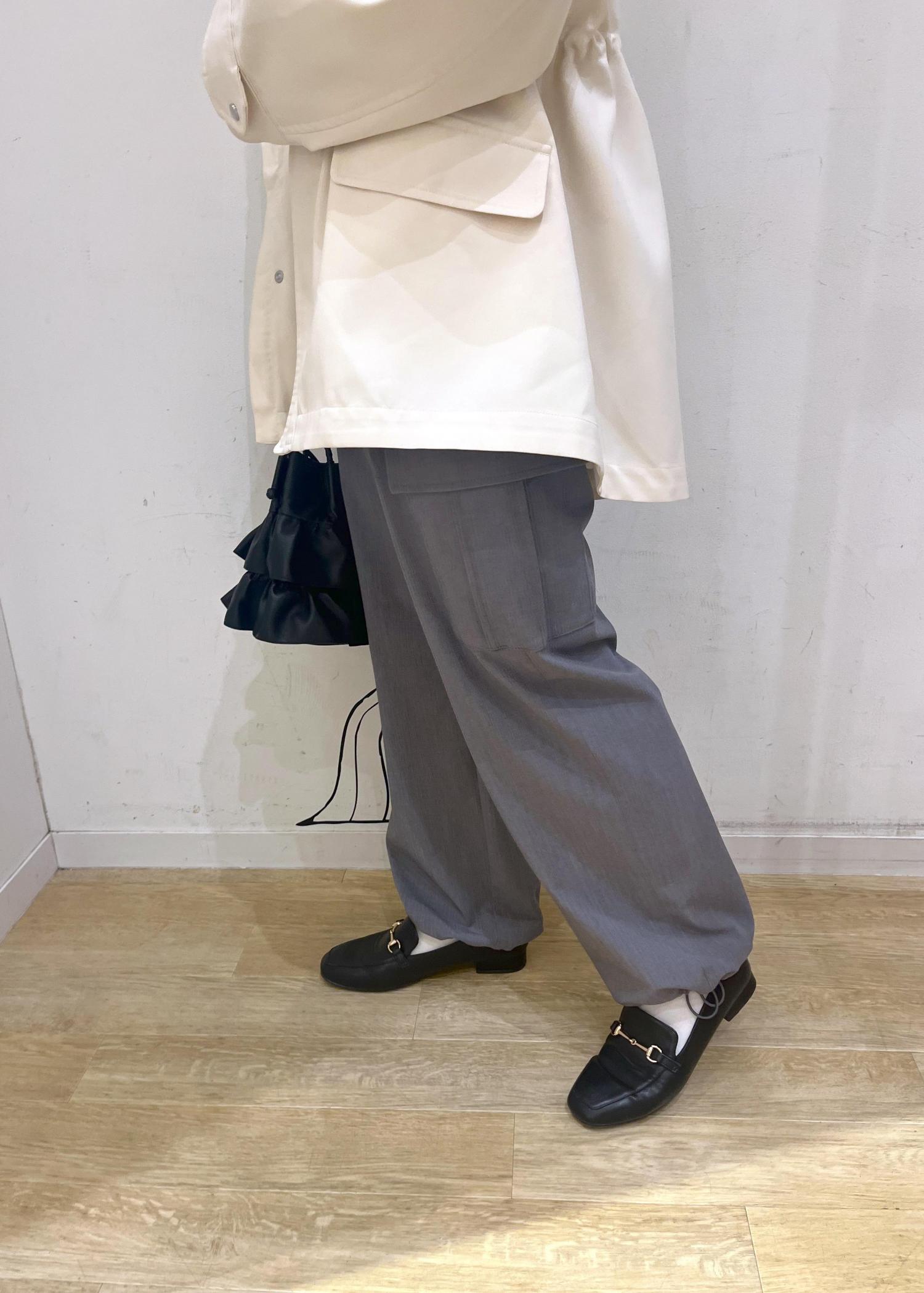カーゴパンツはカジュアルなスタイリングはもちろん合いますが足元の絞りを調節できるので雰囲気を変えて着回しを楽しめます!