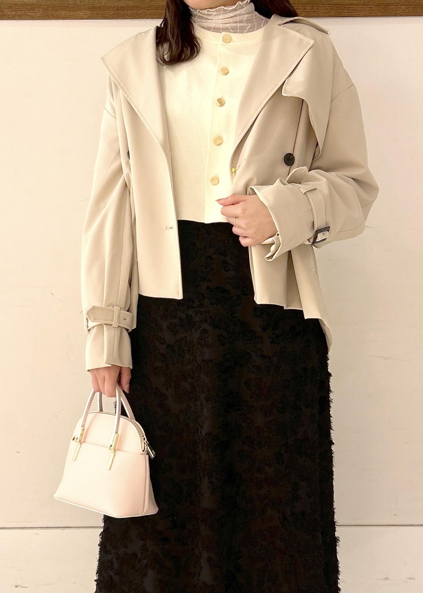 春らしいスタイリングにトレンチコートを合わせたコーディネートです。