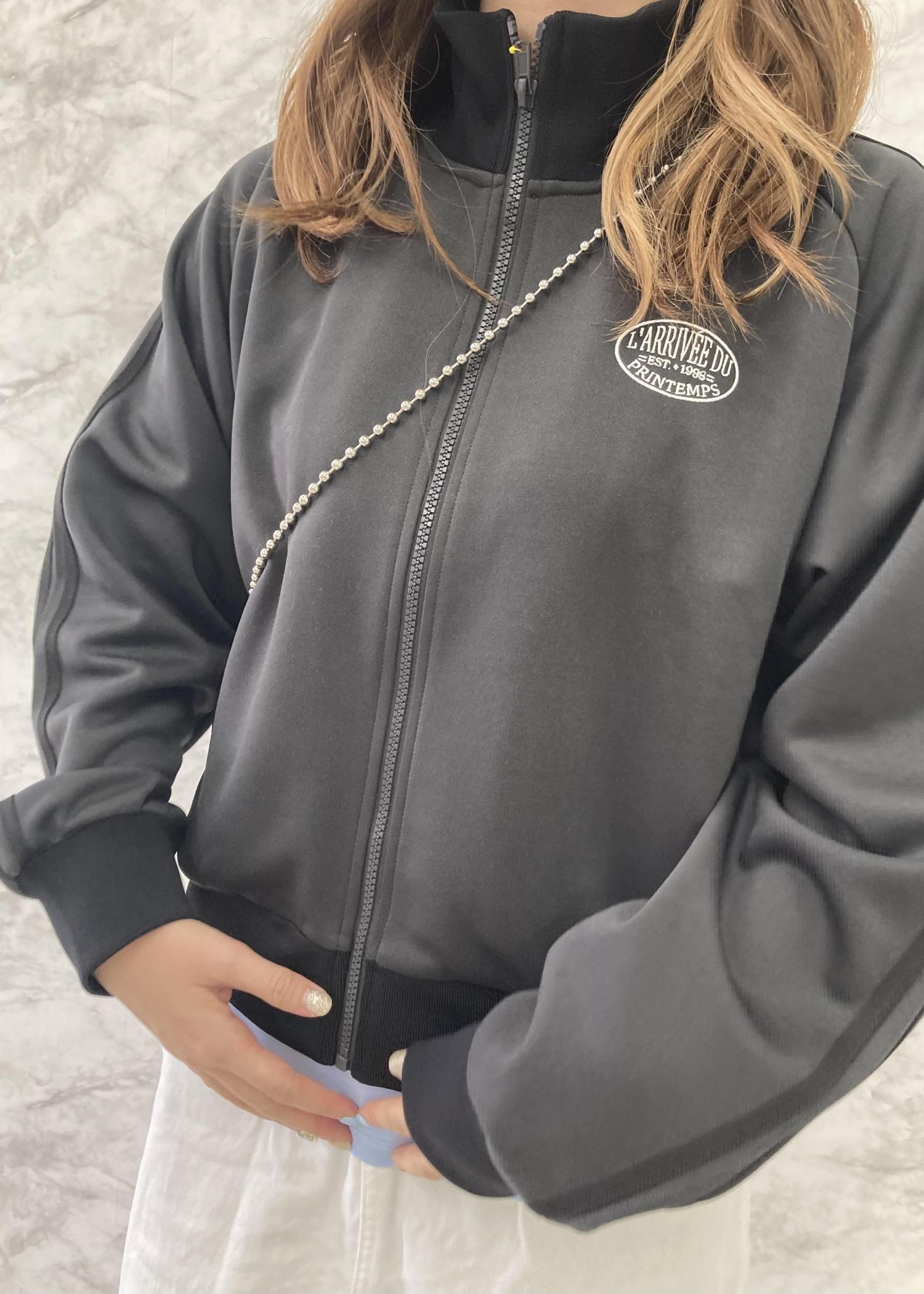 トレンドのトラックジャケットを使ったカジュアルコーデ。スカートあわせで可愛らしさもプラスしました。