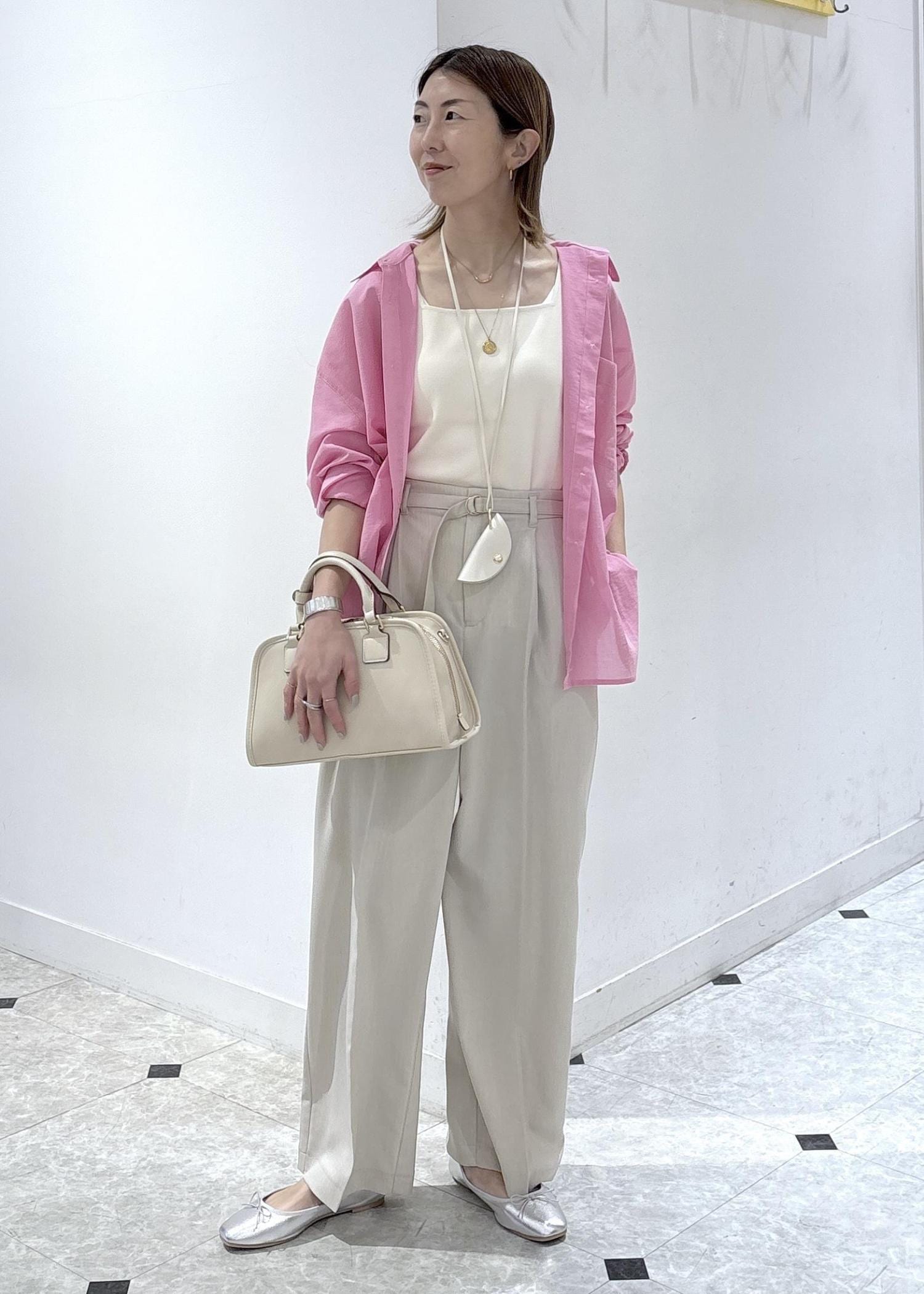 ハリ感のあるワイドパンツ合わせで、きれいめカジュアルコーデにしました。