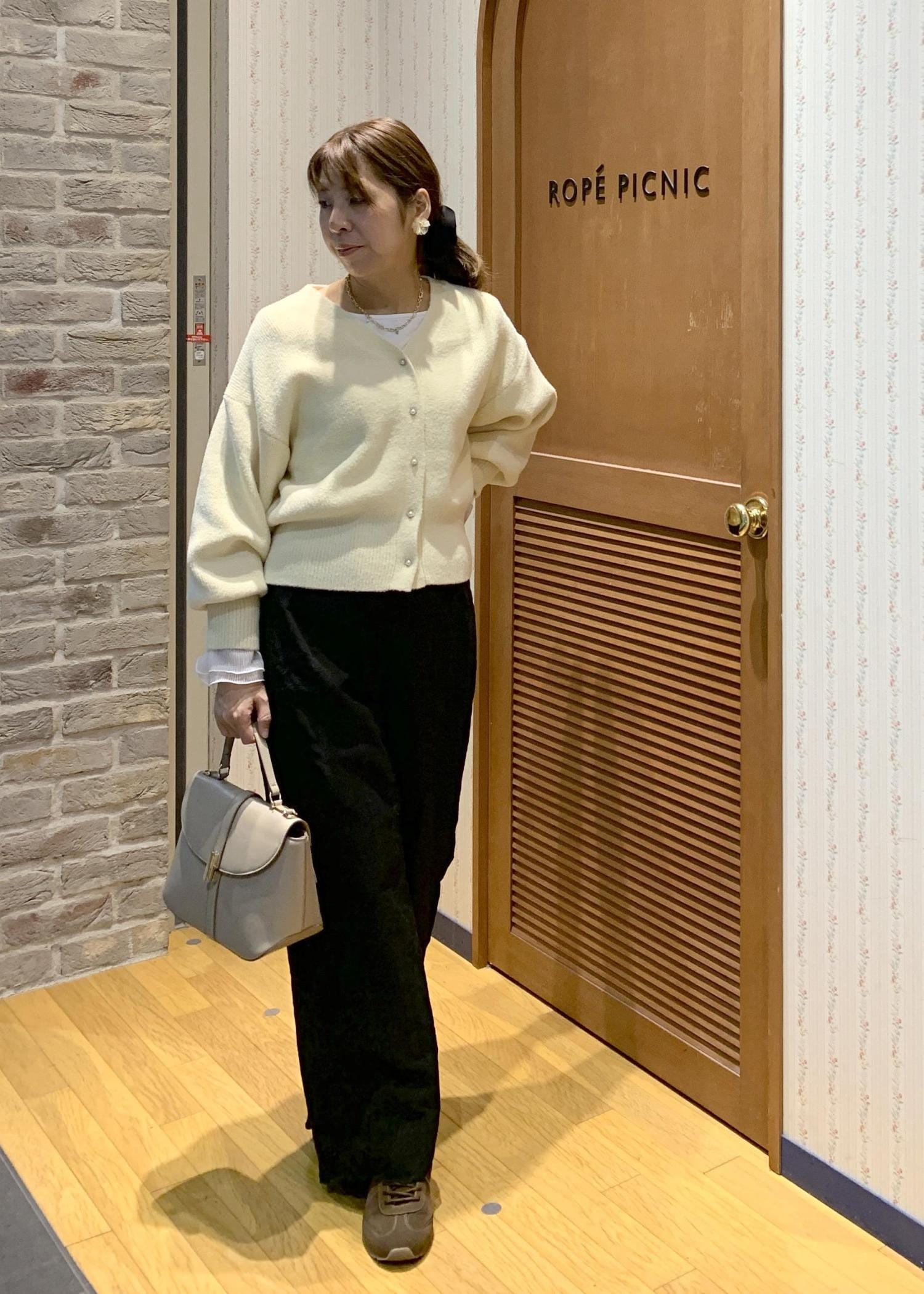 履き心地抜群の革命デニムを使ったスタイリングです。コーディネートを明るくしてくれるホワイトのジャケットは春のお出かけにぴったりです。差し色でピンクを取り入れて、可愛さをプラスしました!