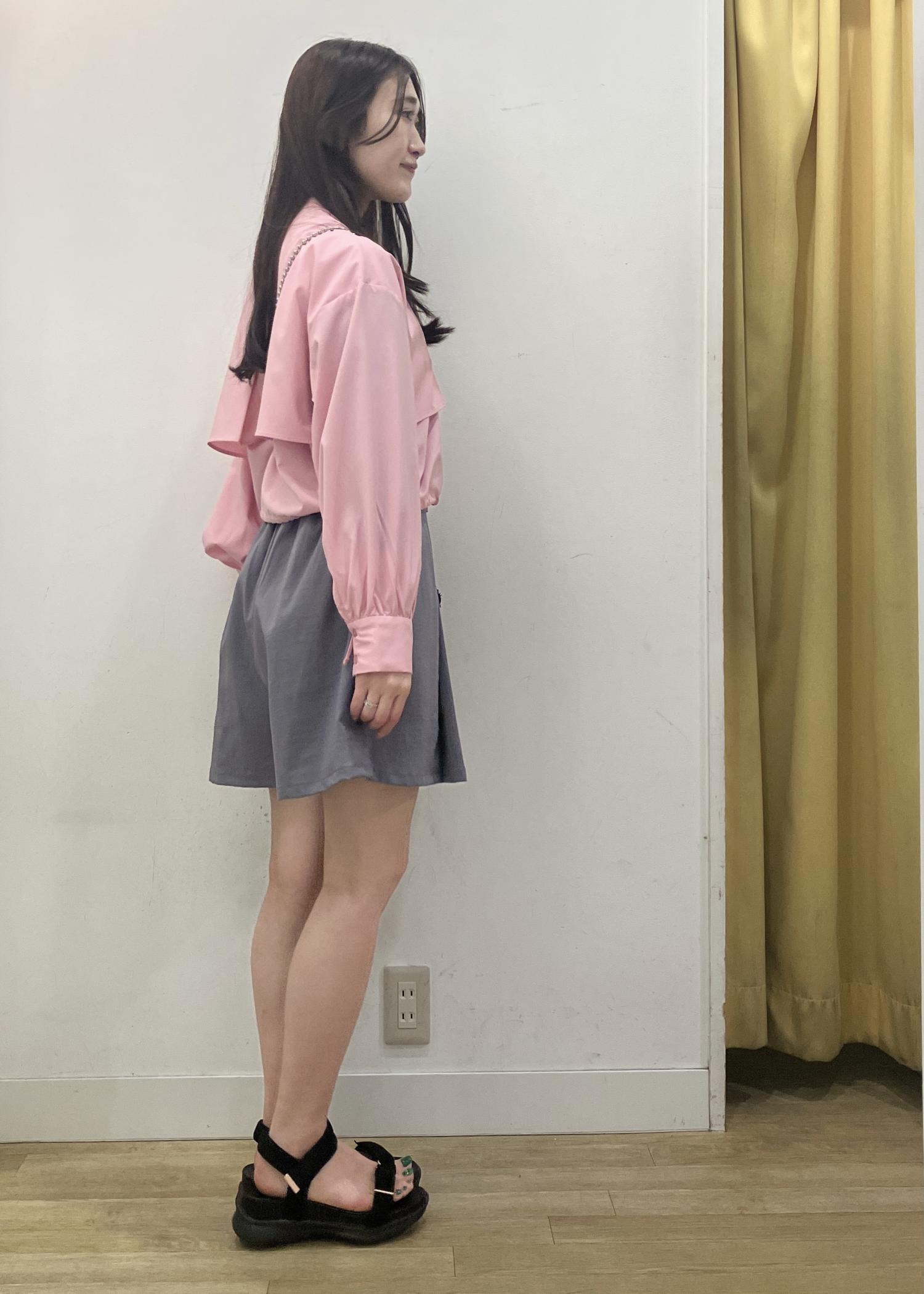 ピンク×グレー キュロットパンツは安心感あるので着やすいです。