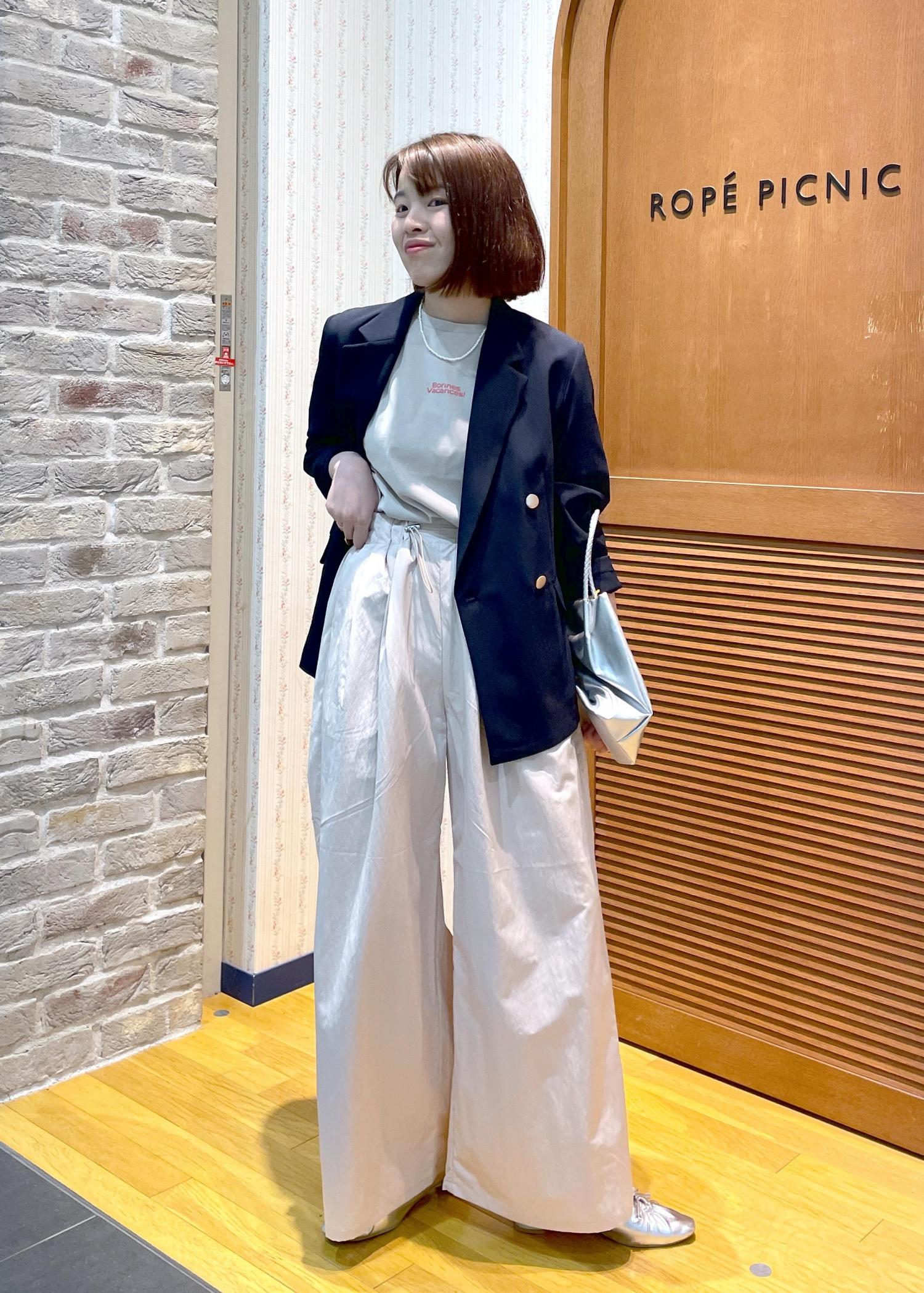 カジュアル見えするドロストパンツにジャケットを合わせて、少しカチッと感のある春コーデに!