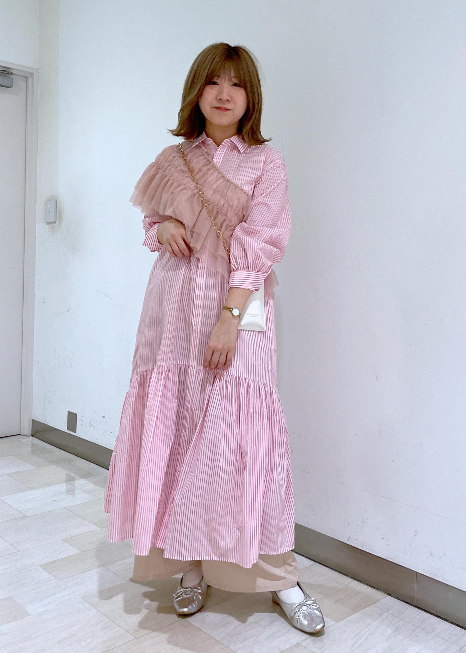 アウトレットROPÉ PICNIC Rボリュームストライプシャツワンピース/リンクコーデピンク / 38¥3,461レビュー軽やかな生地感で涼しい。