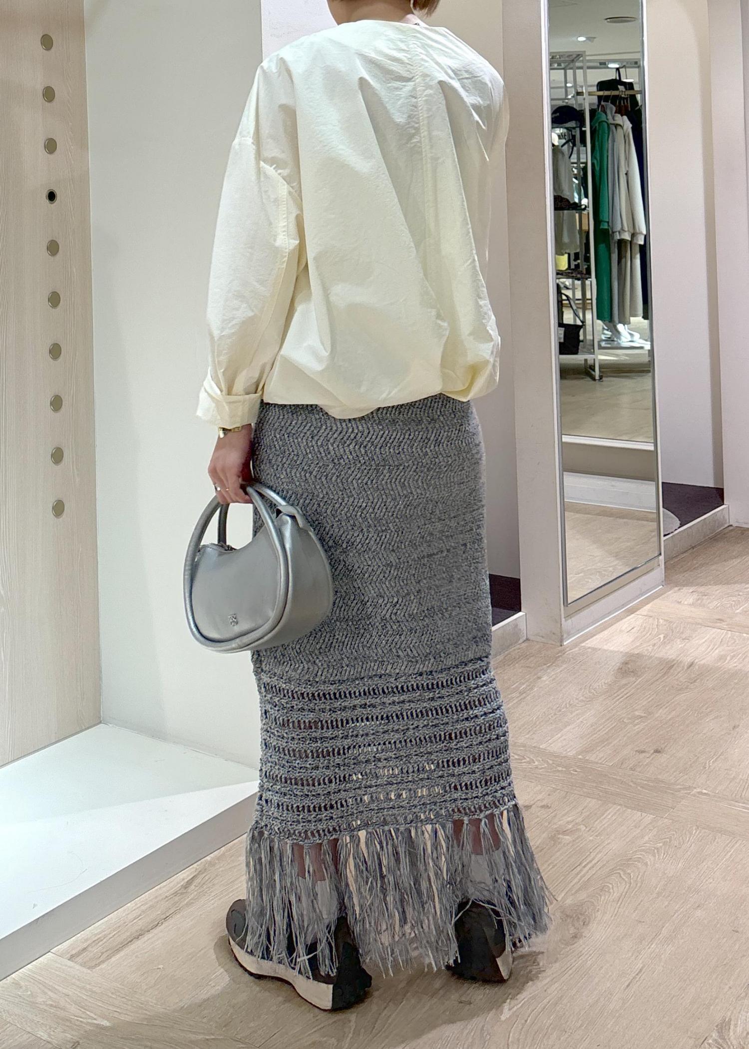 アウトレットVISフリンジクロシェメッシュニットスカートブルー系 / F¥3,076レビュー女性らしいシルエットで生地に少しラメ感があります。Sサイズの方は若干ウエストゆるめです。