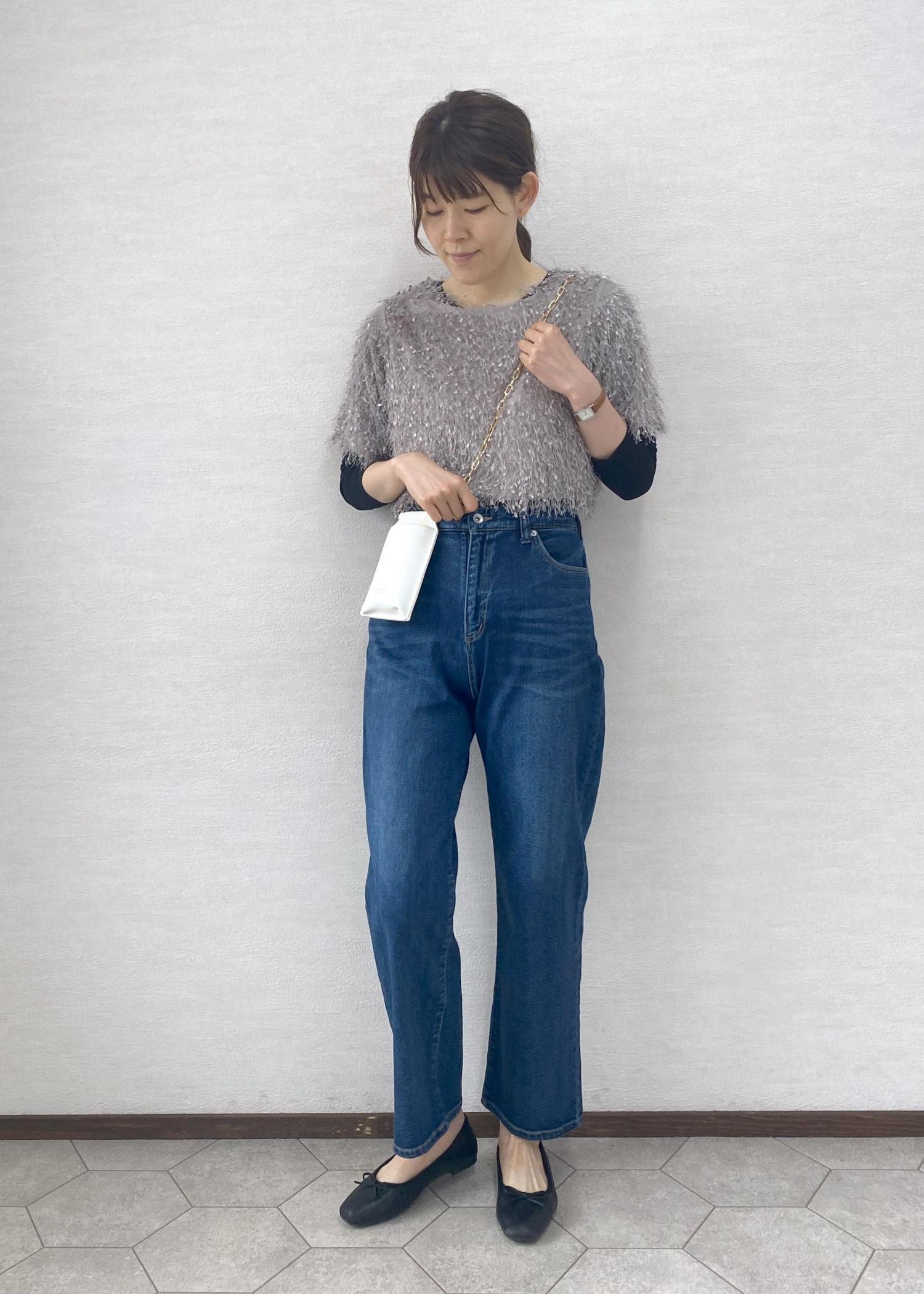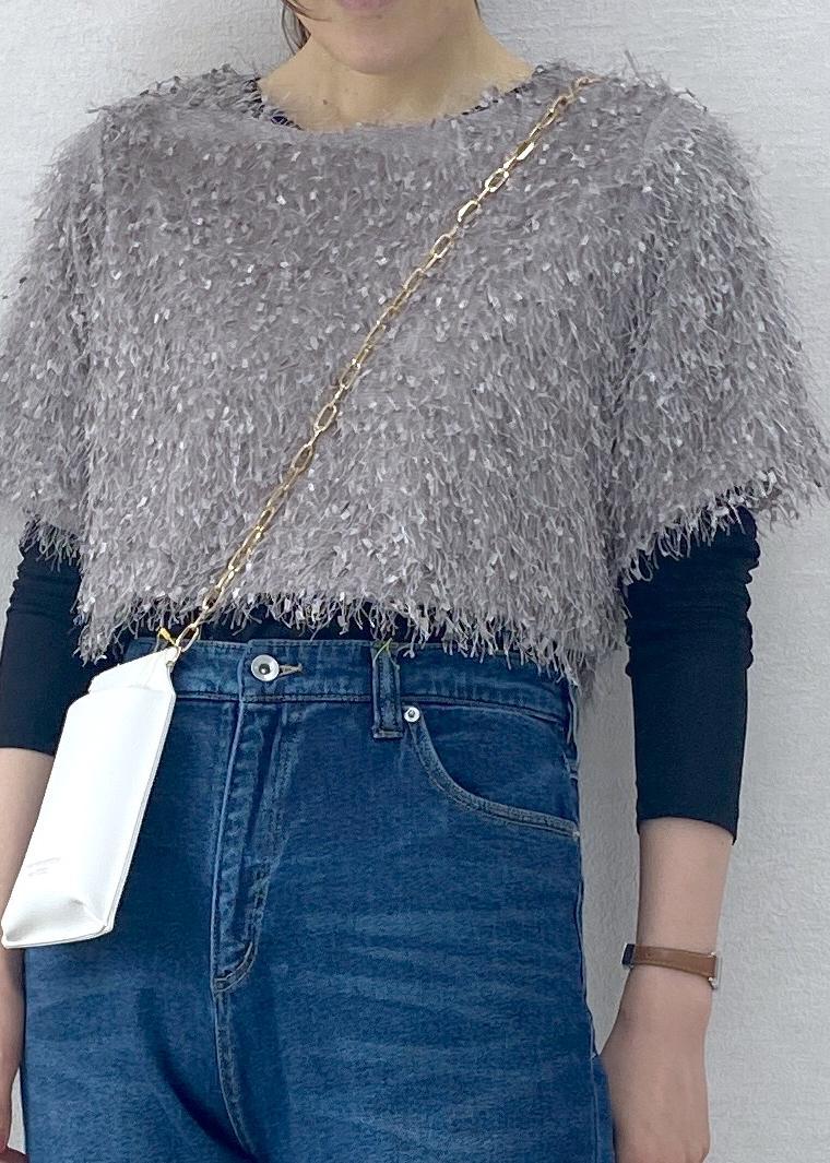 テープヤーンのふわふわトップスは、コーディネートに新鮮さをプラスしてくれます。