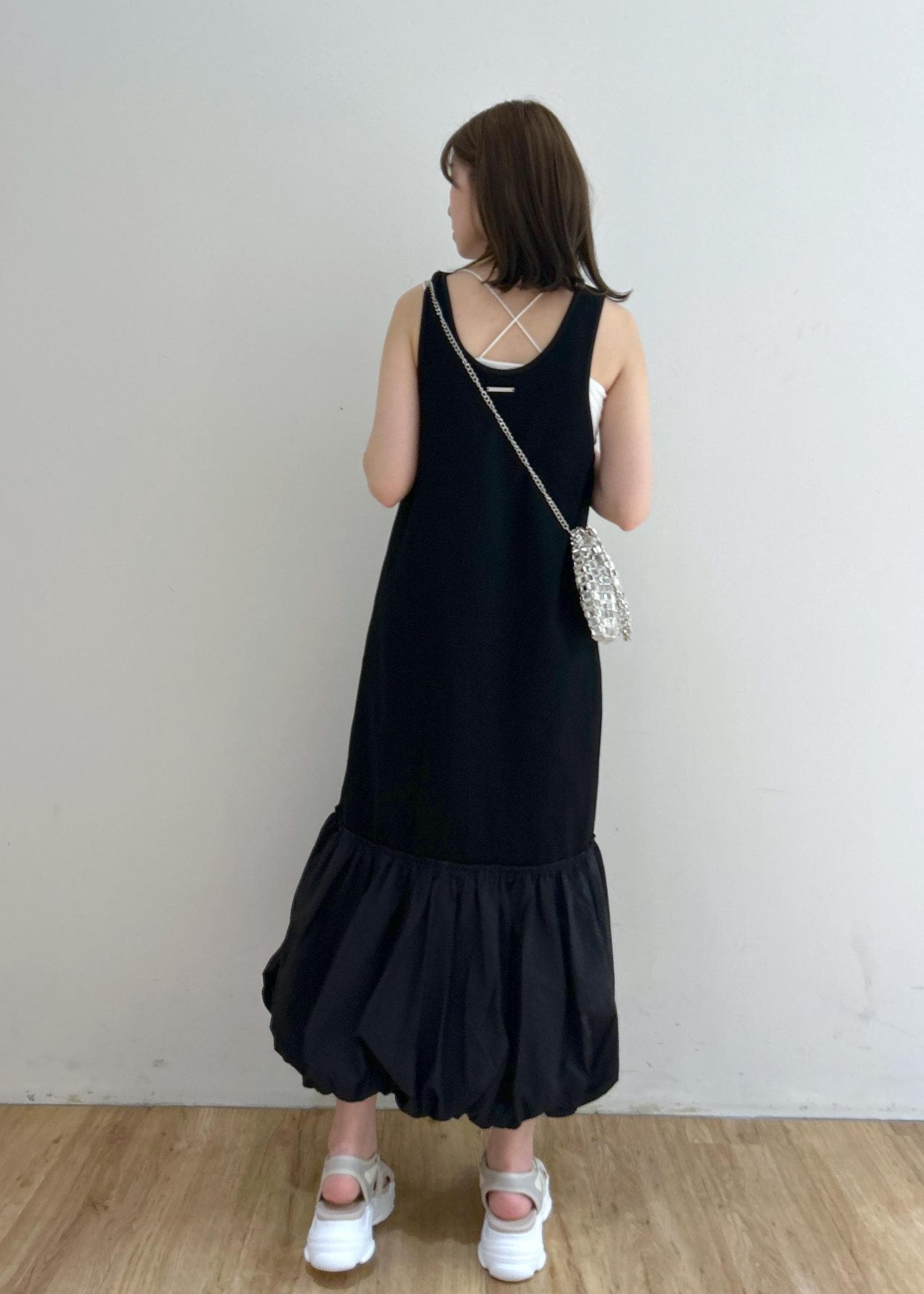 ワンピースはゆったりシルエットながらも、 落ち感があるのでキレイなシルエットです。 ストレスフリーな着心地なのも嬉しい。