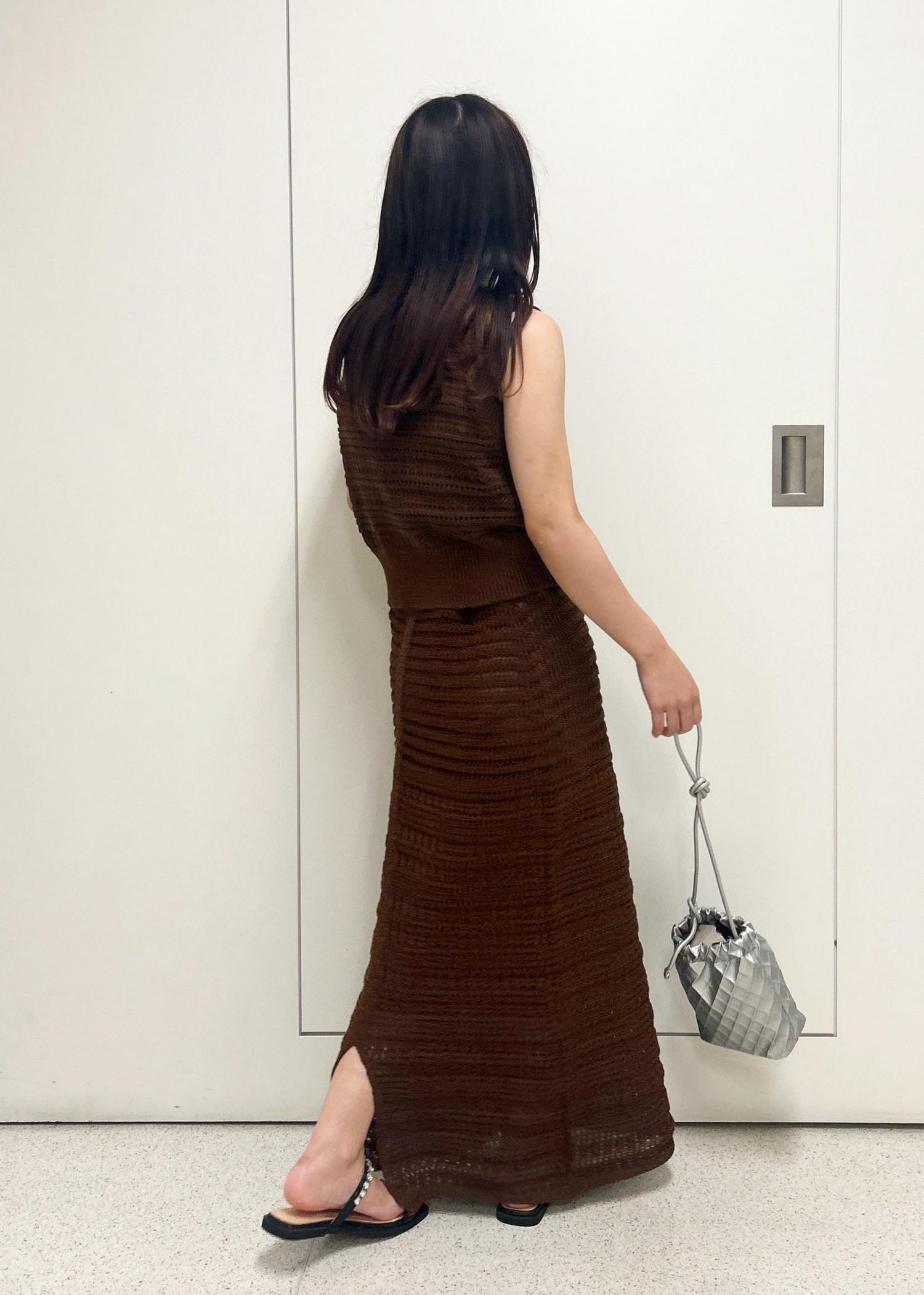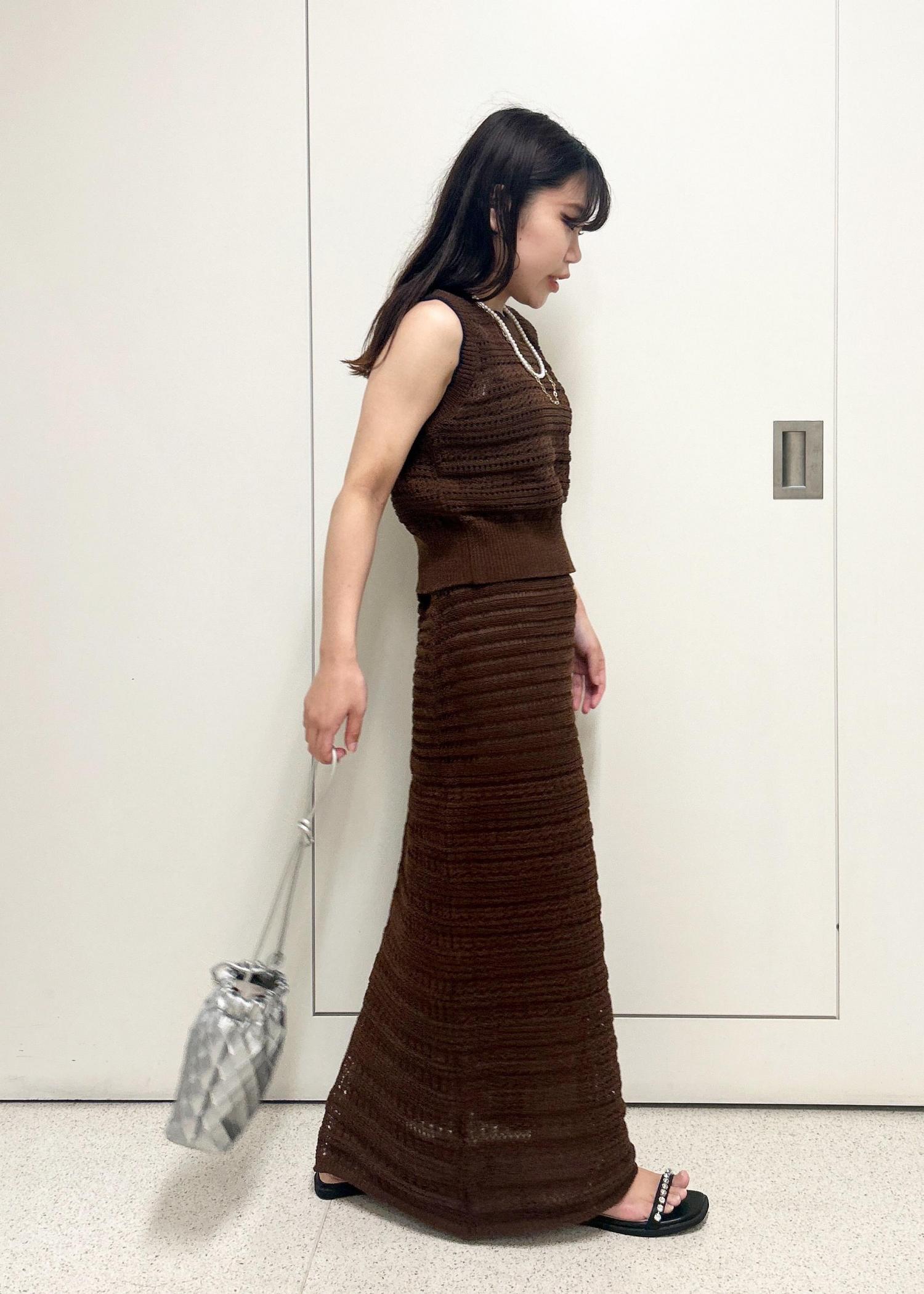 アウトレットROPÉ PICNICセットアップ対応/透かし編みテープヤーンIラインニットスカートブラウン系 / 38¥3,020レビュー147cmでフラットサンダルでも引きづらずに履ける丈感です。
