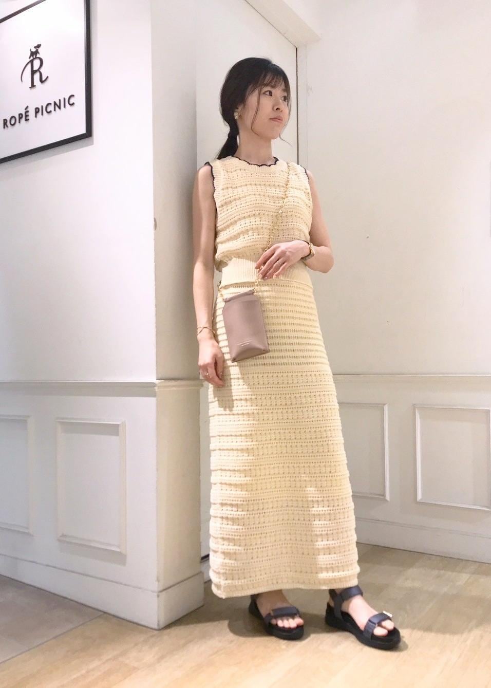 アウトレットROPÉ PICNICセットアップ対応/透かし編みテープヤーンIラインニットスカートキナリ系 / 38¥2,718レビュー透かし編みの涼しげなニットスカート。