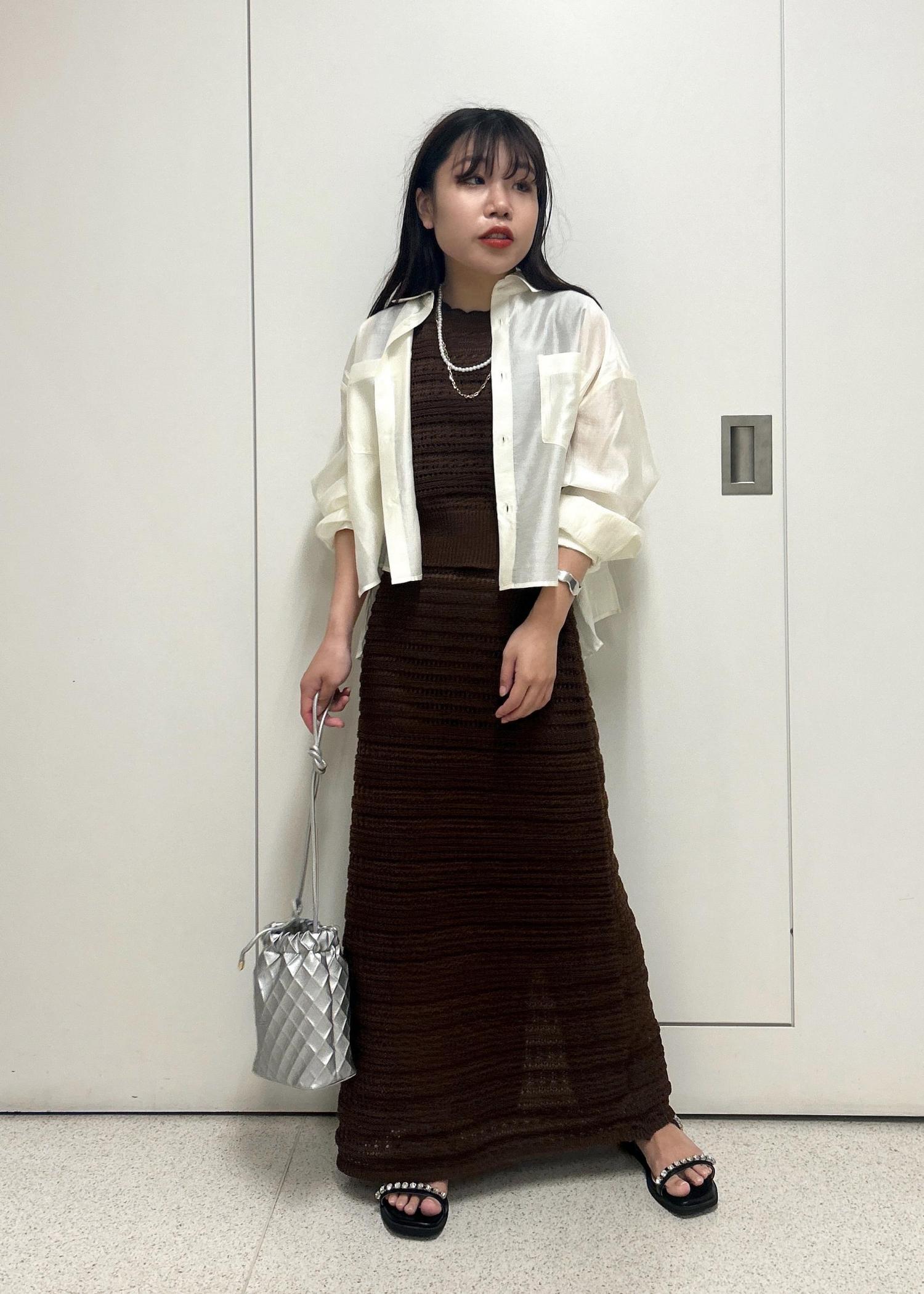 アウトレットROPÉ PICNICセットアップ対応/透かし編みテープヤーンIラインニットスカートブラウン系 / 38¥3,020レビュー147cmでフラットサンダルでも引きづらずに履ける丈感です。