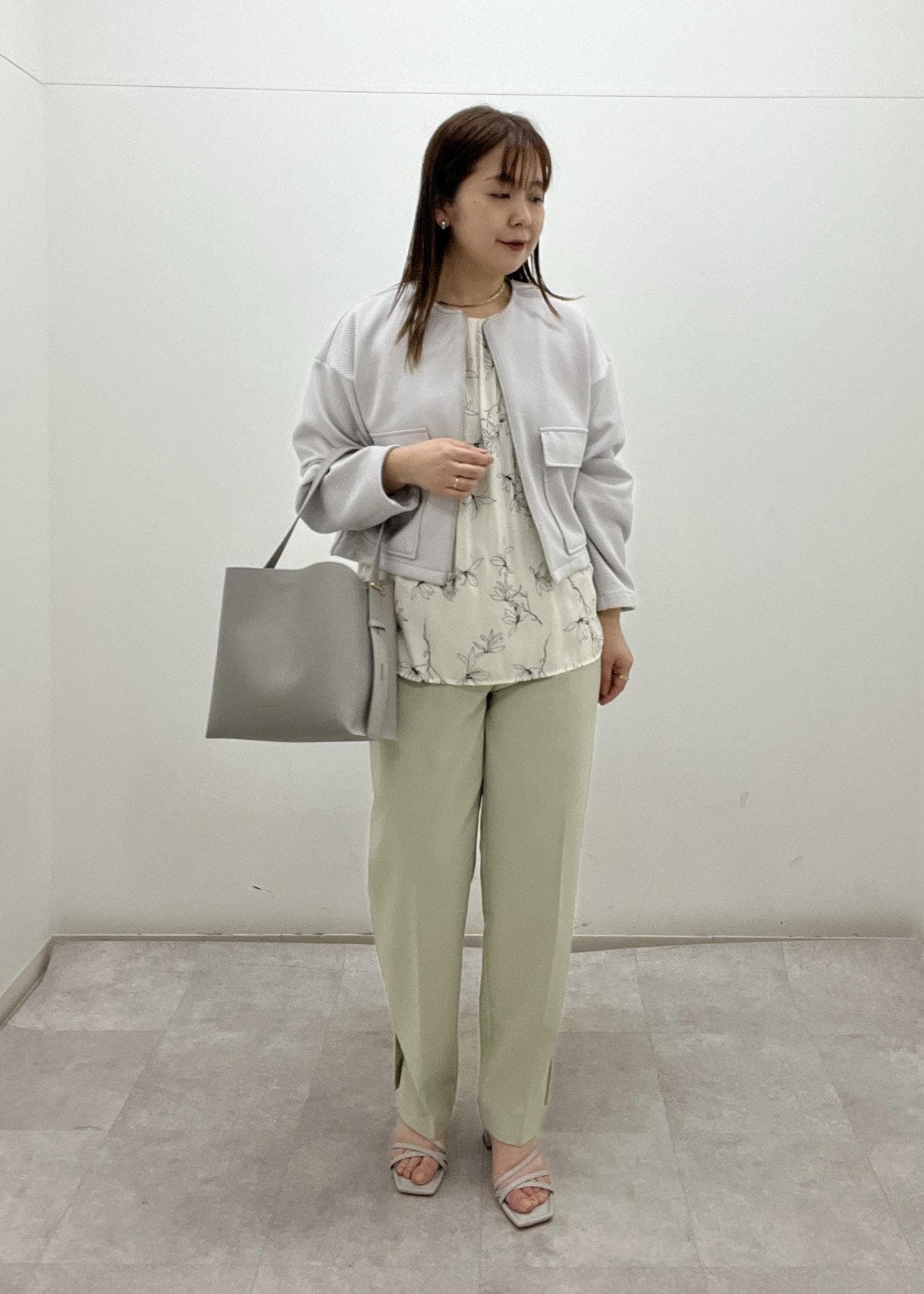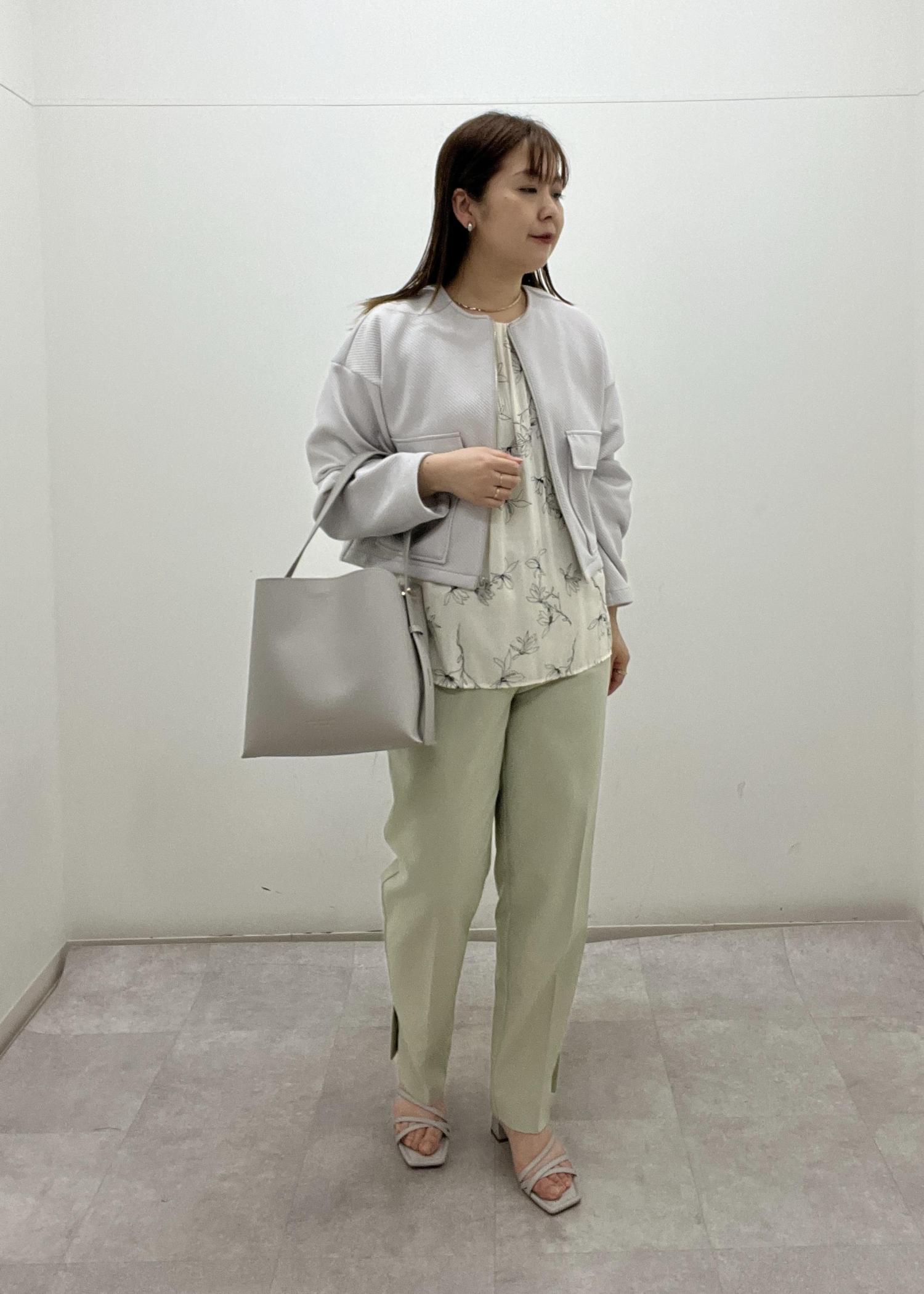 柔らかいペールトーンなのでお仕事着としても取り入れやすいです。