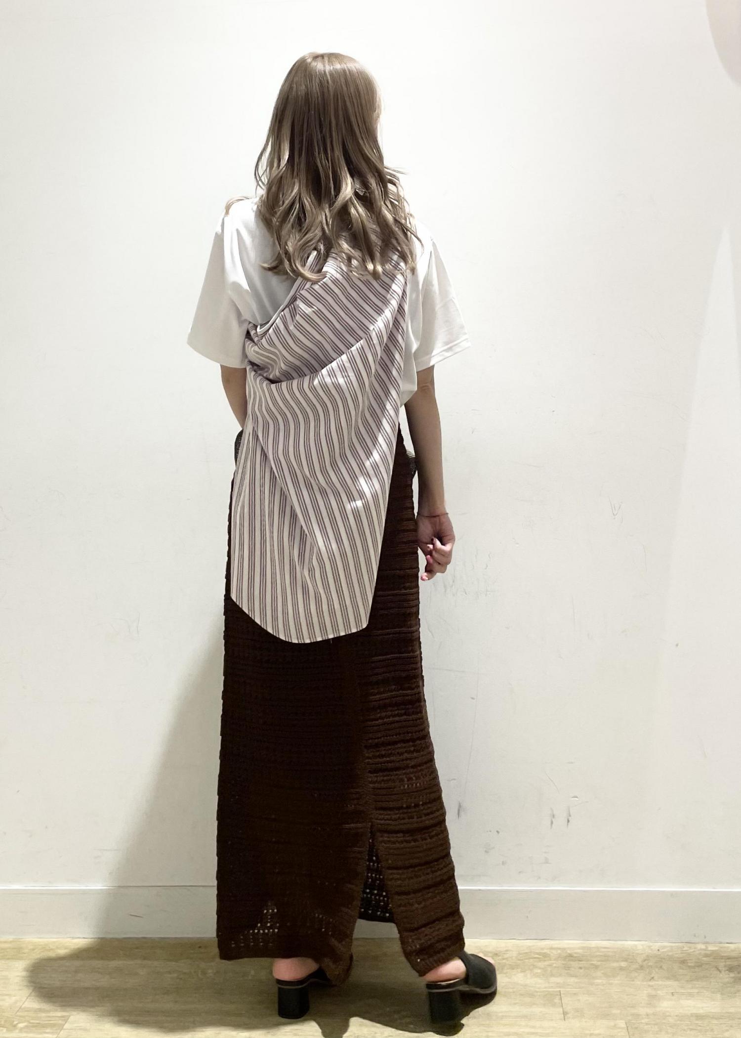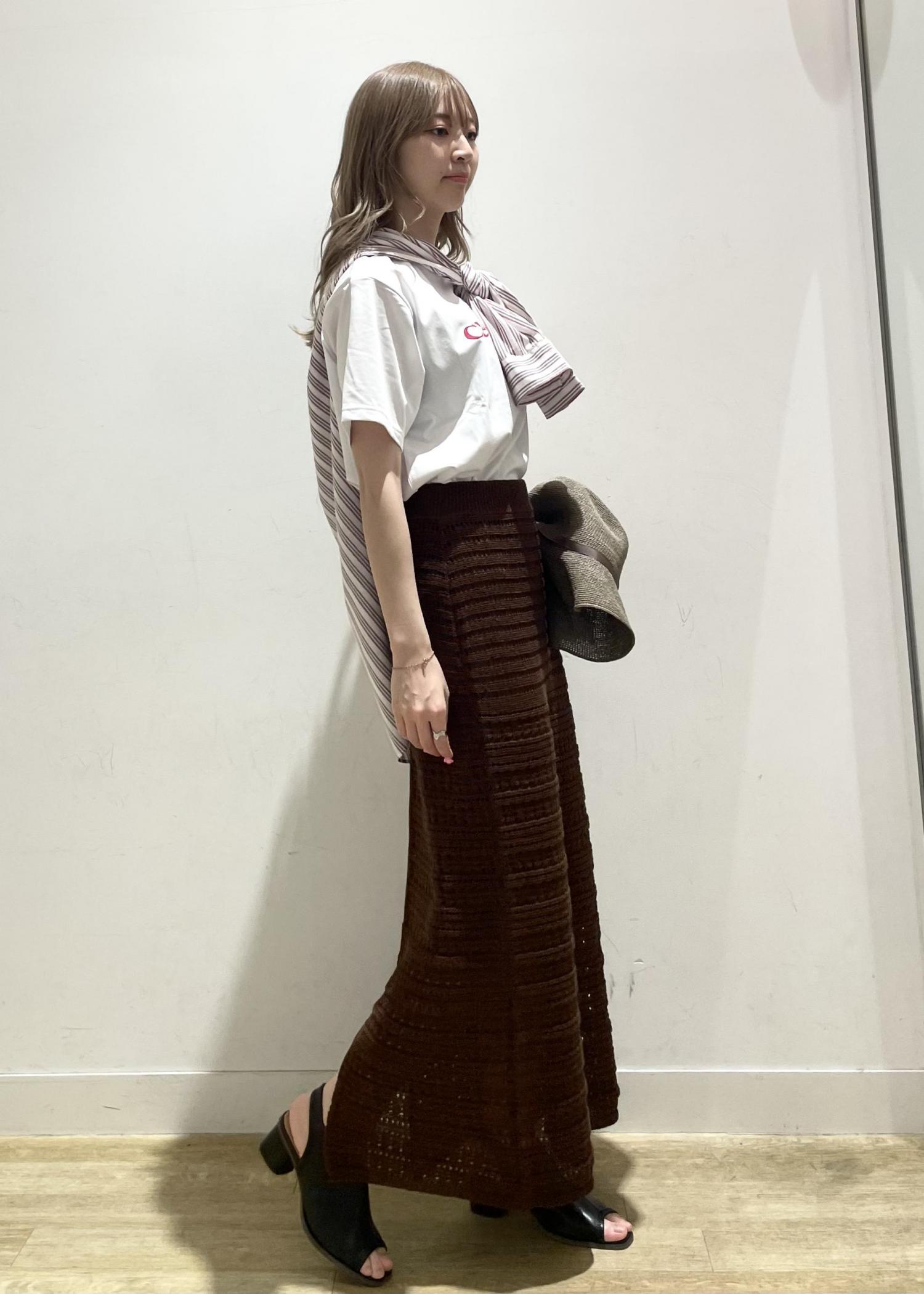 透かし編みスカートはコーディネートに変化をつけてくれるので、シンプルになりがちな夏のコーデにピッタリです♩さらにプラスでシャツを巻いたり帽子をかぶったり、アレンジ自由自在ですよ。