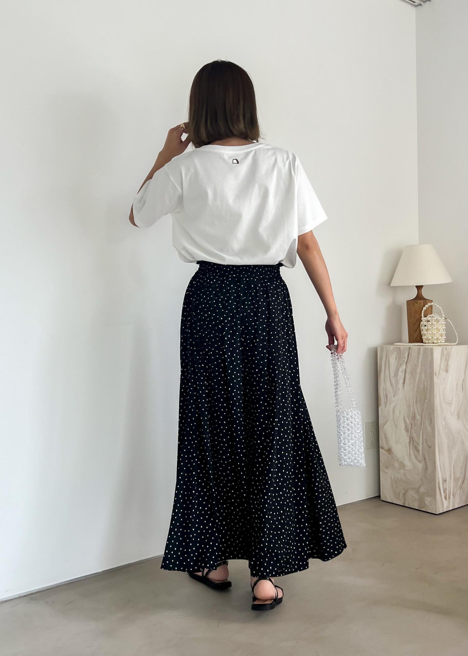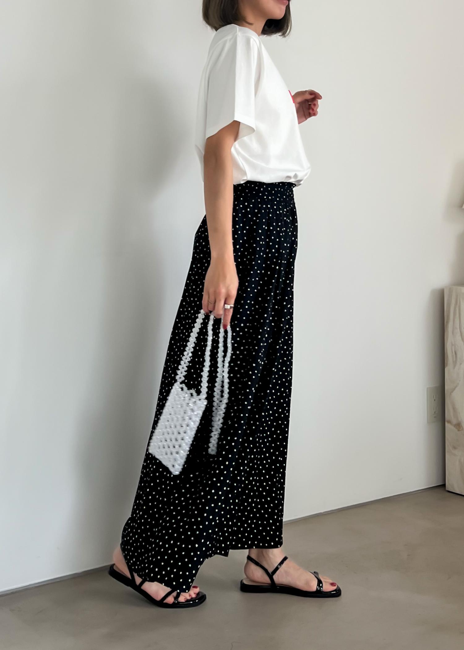 ドット柄ボトムなら白Tでも華やかなさもある春夏コーデに。