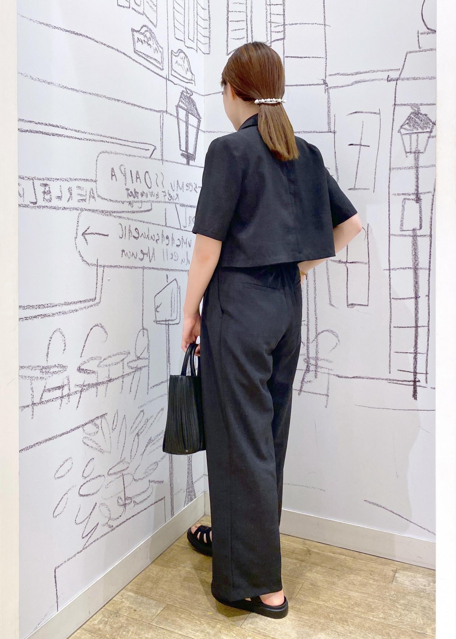ブラックのセットアップで大人っぽく◎シンプルなデザインなのでネックレスをアクセントにしました♪