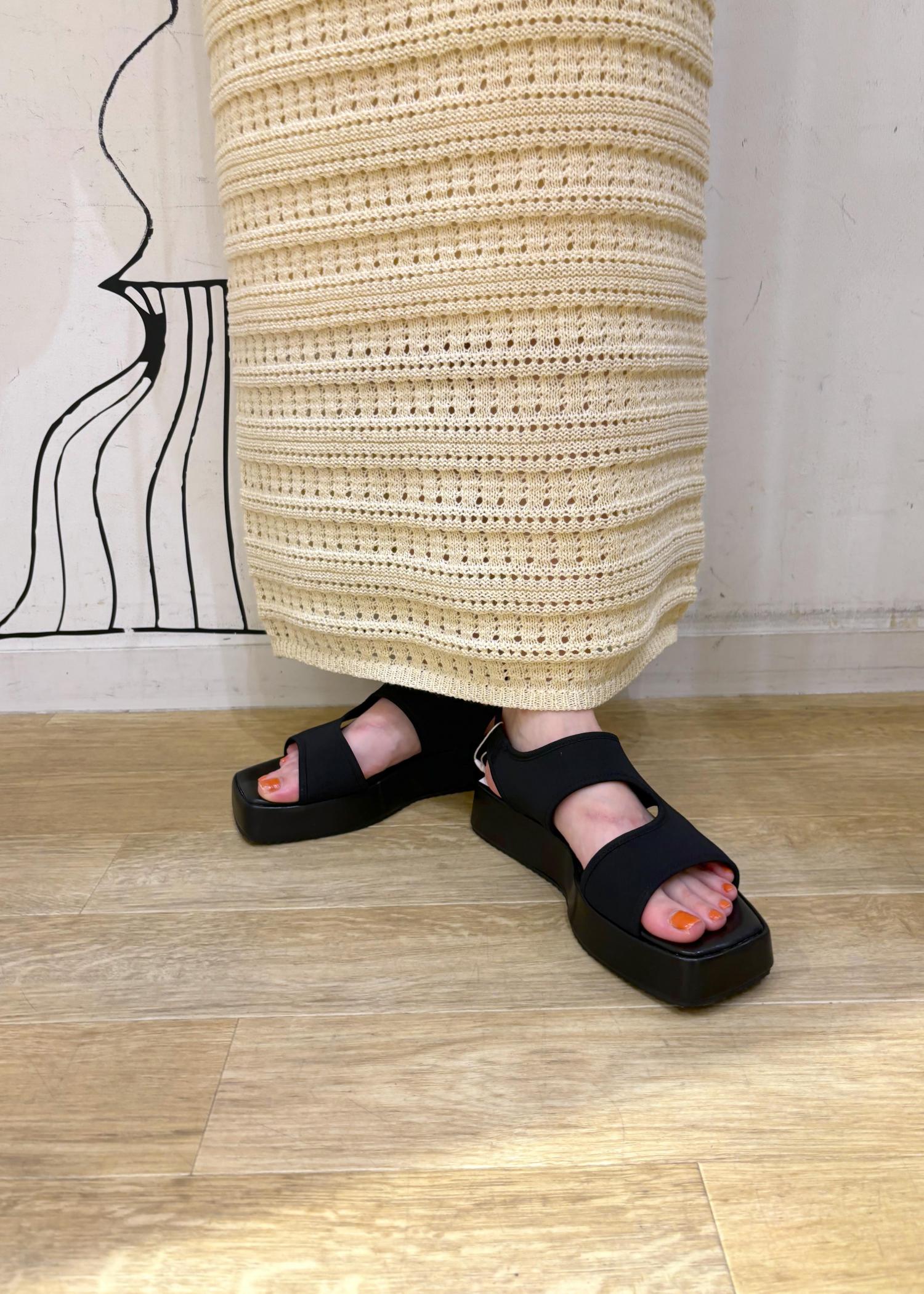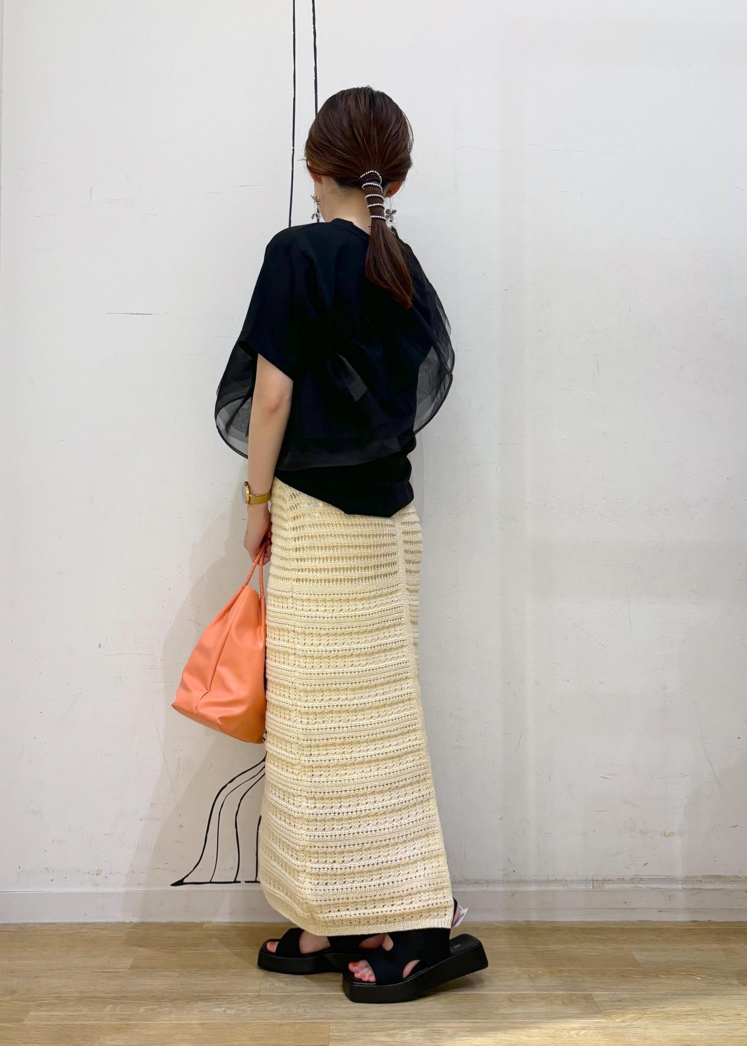 マキシ丈でしっかり着丈がありますが裏地のない部分は透け感があって重たくなく着れます。ニットなので伸縮性もあって動きやすいスカートです。