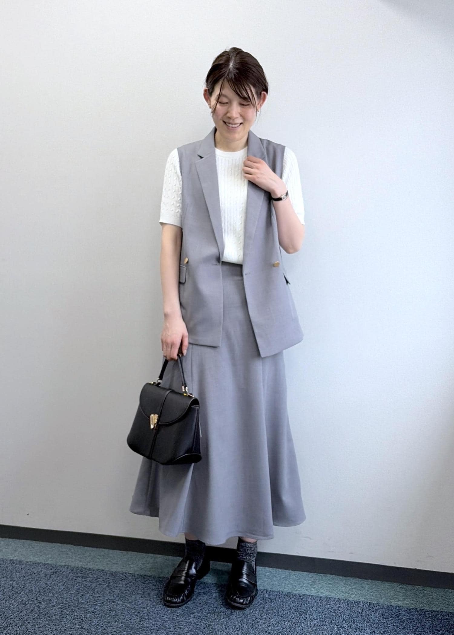 今年トレンドのスポーティーなジャージボトムスには、きっちりジャケットで大人っぽく着こなせます。楽におしゃれが楽しめるお出かけスタイルです♫