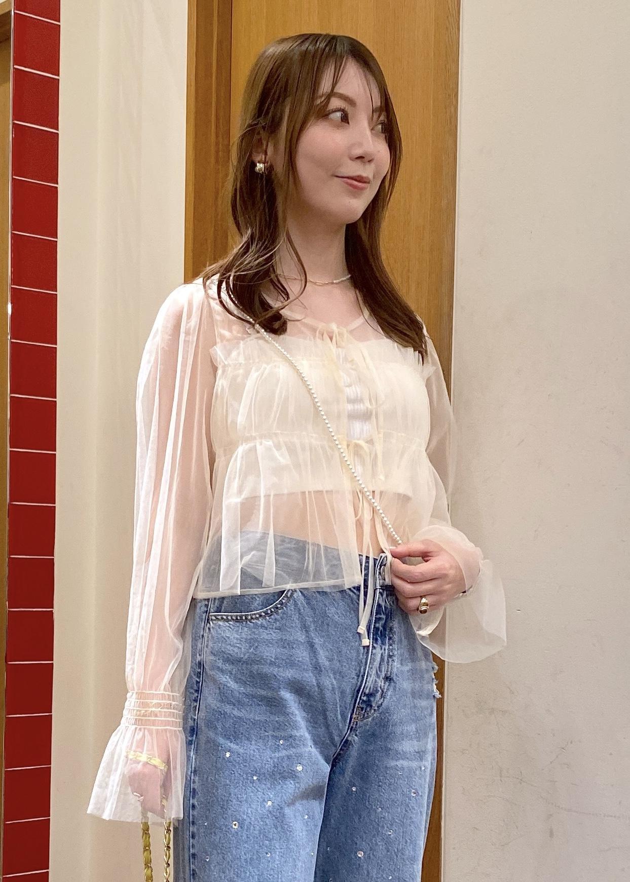 骨格ウェーブの方が得意なチュールの軽やかさ、透け感、短丈。。華奢な上半身をいかせるトップスなので是非着て欲しいです!