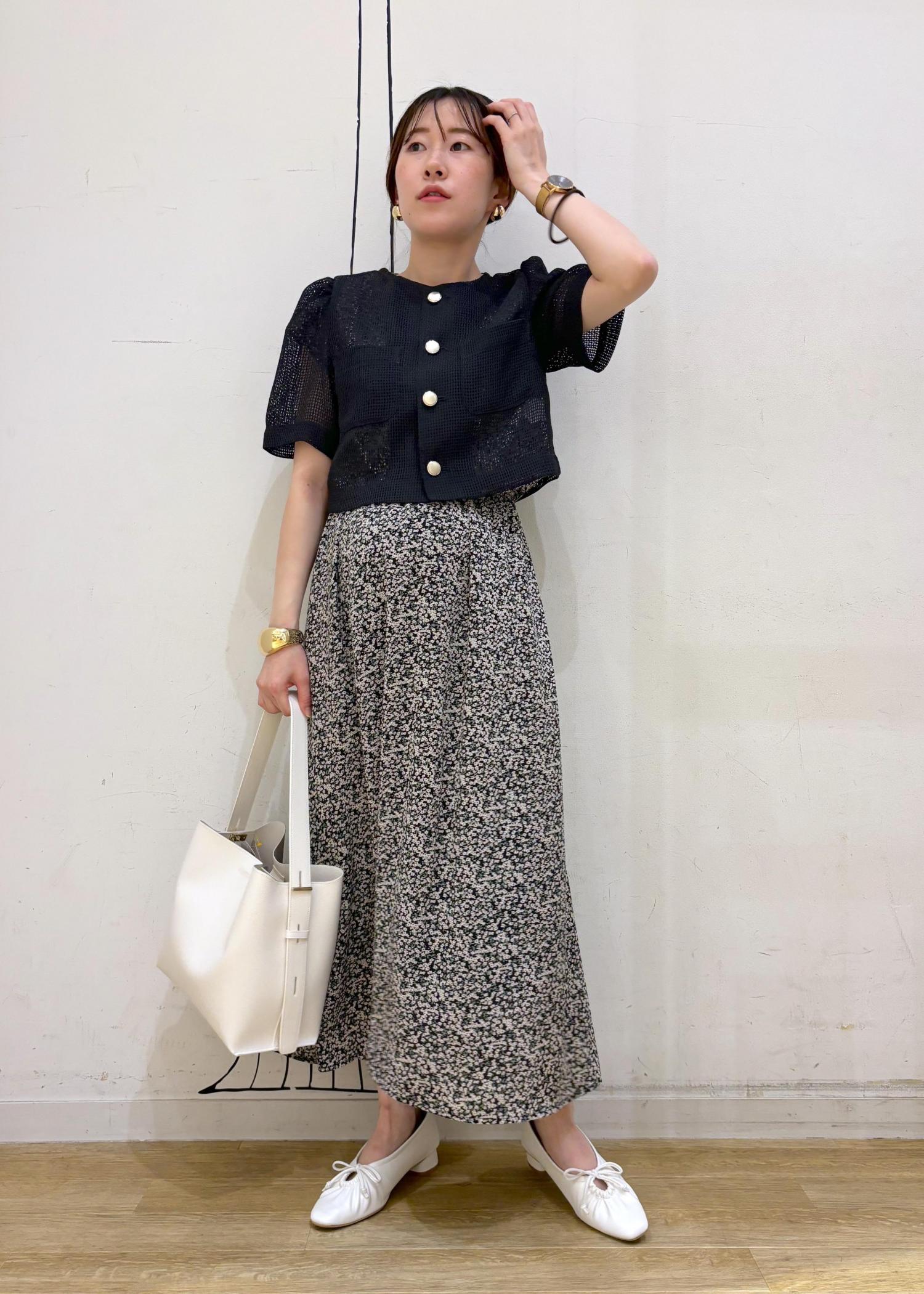 メッシュのような素材で涼しく着れて夏の羽織におすすめです。着丈は短めなのでスカート、ワンピース、丈の長いものともバランス良く着れます。デイリーでもオフィスカジュアルなスタイリングにもマッチします! -