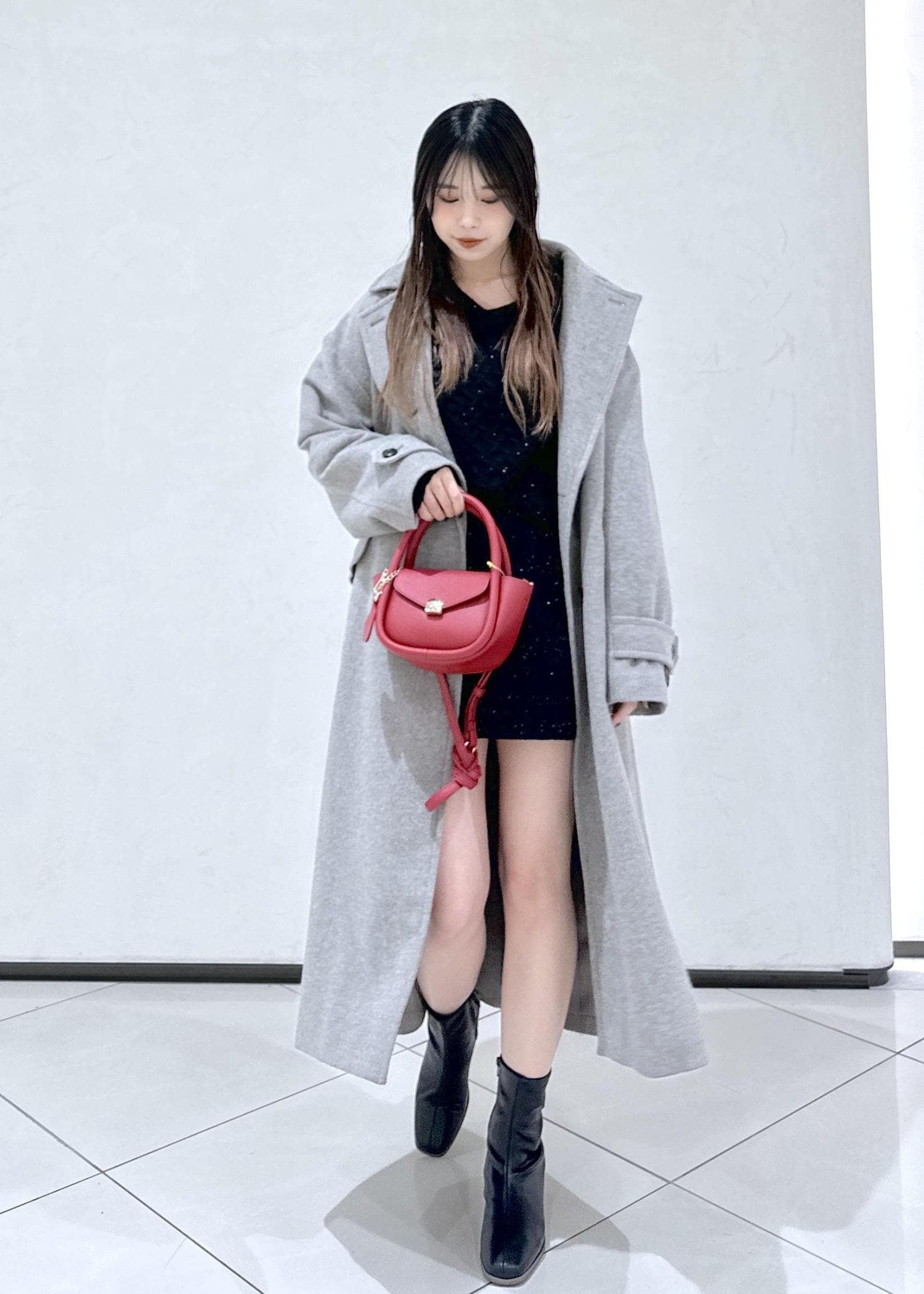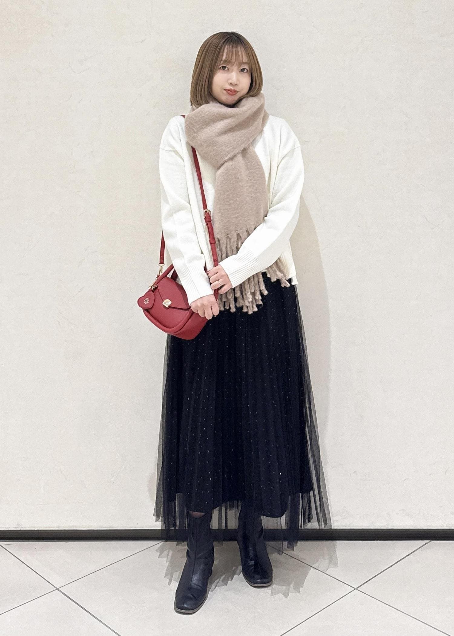 光沢のあるスカートをスウェットと合わせてカジュアルダウンしてみました!外のお出かけでも上品さのあるカジュアルコーデでお洒落感出ますよ♪是非お試しください。