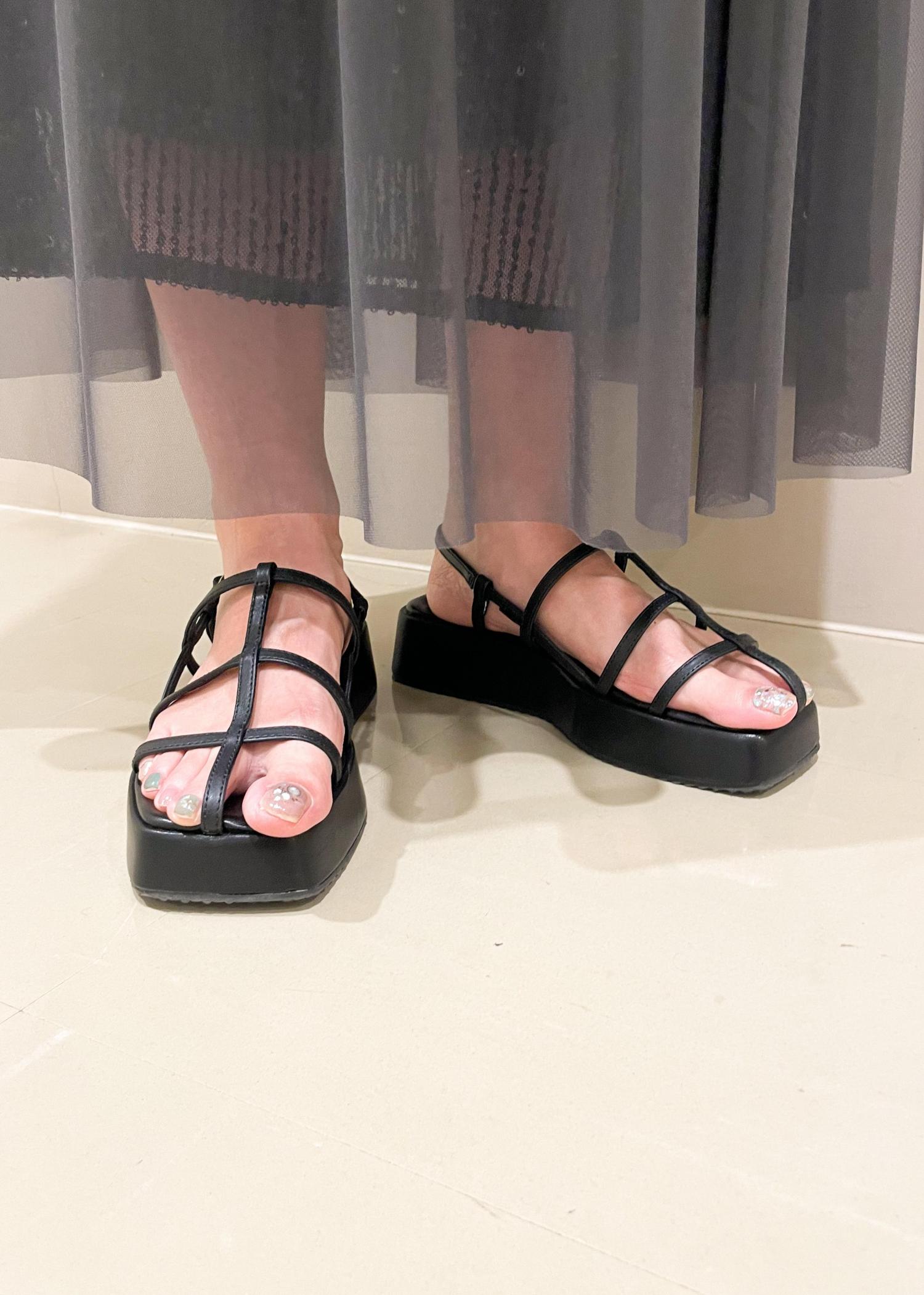 スキニーストラッププラットフォームサンダル
