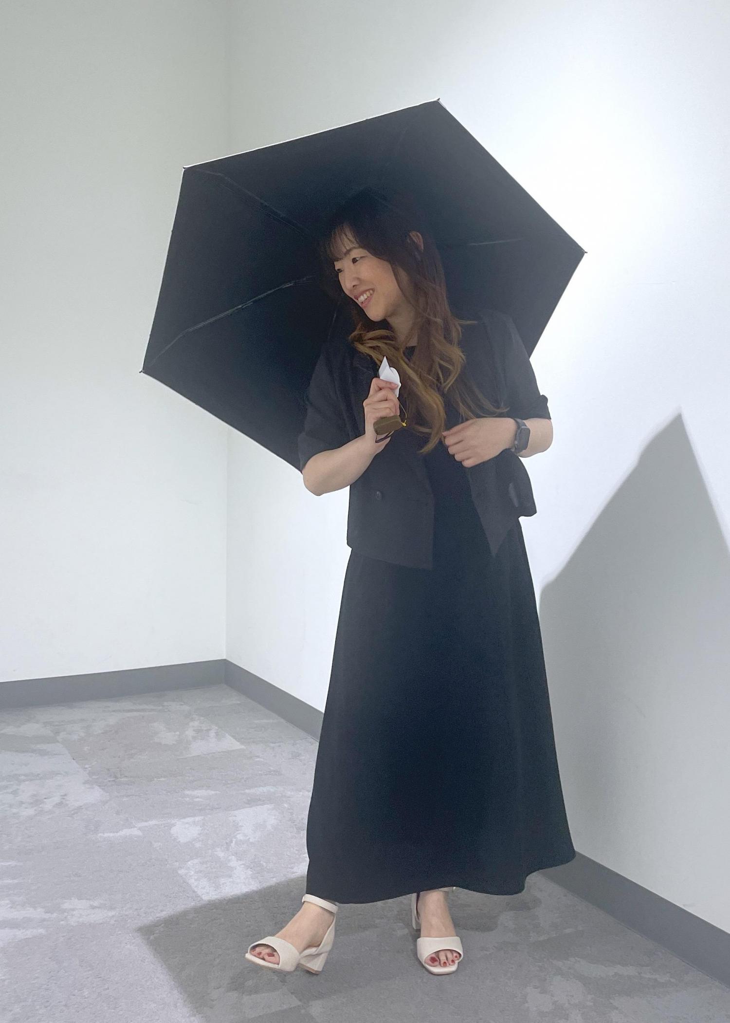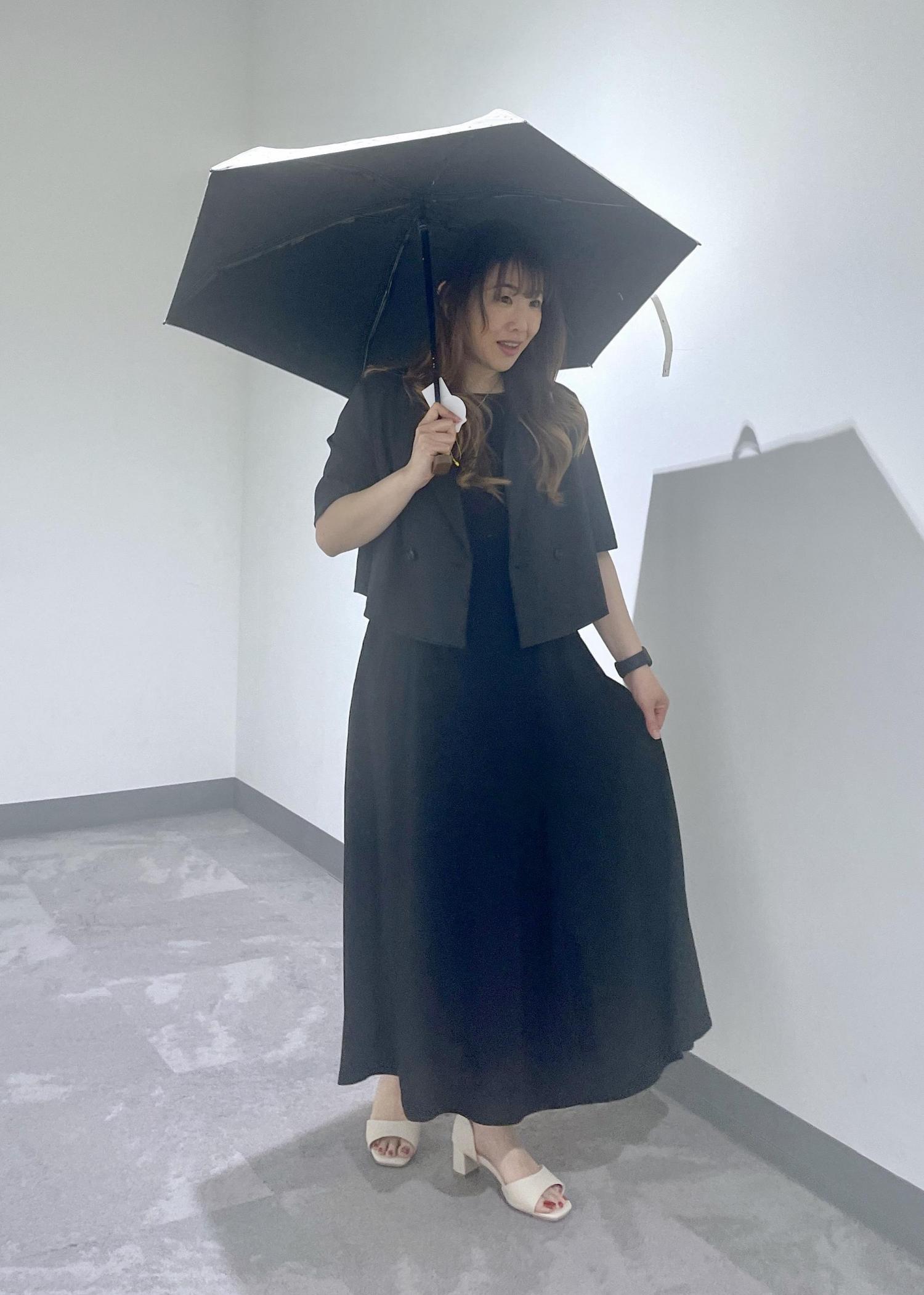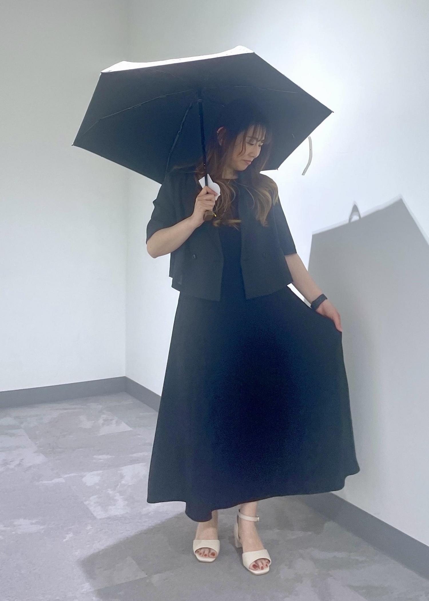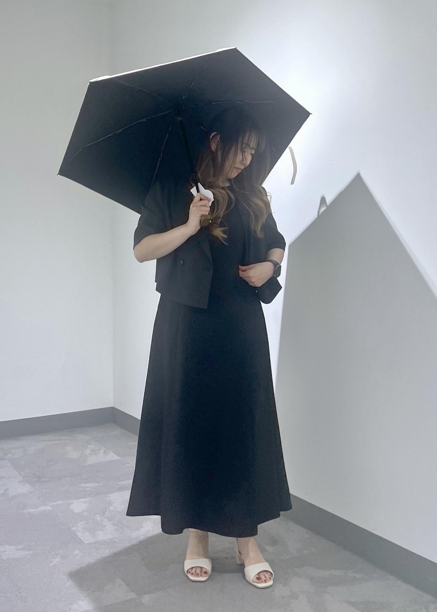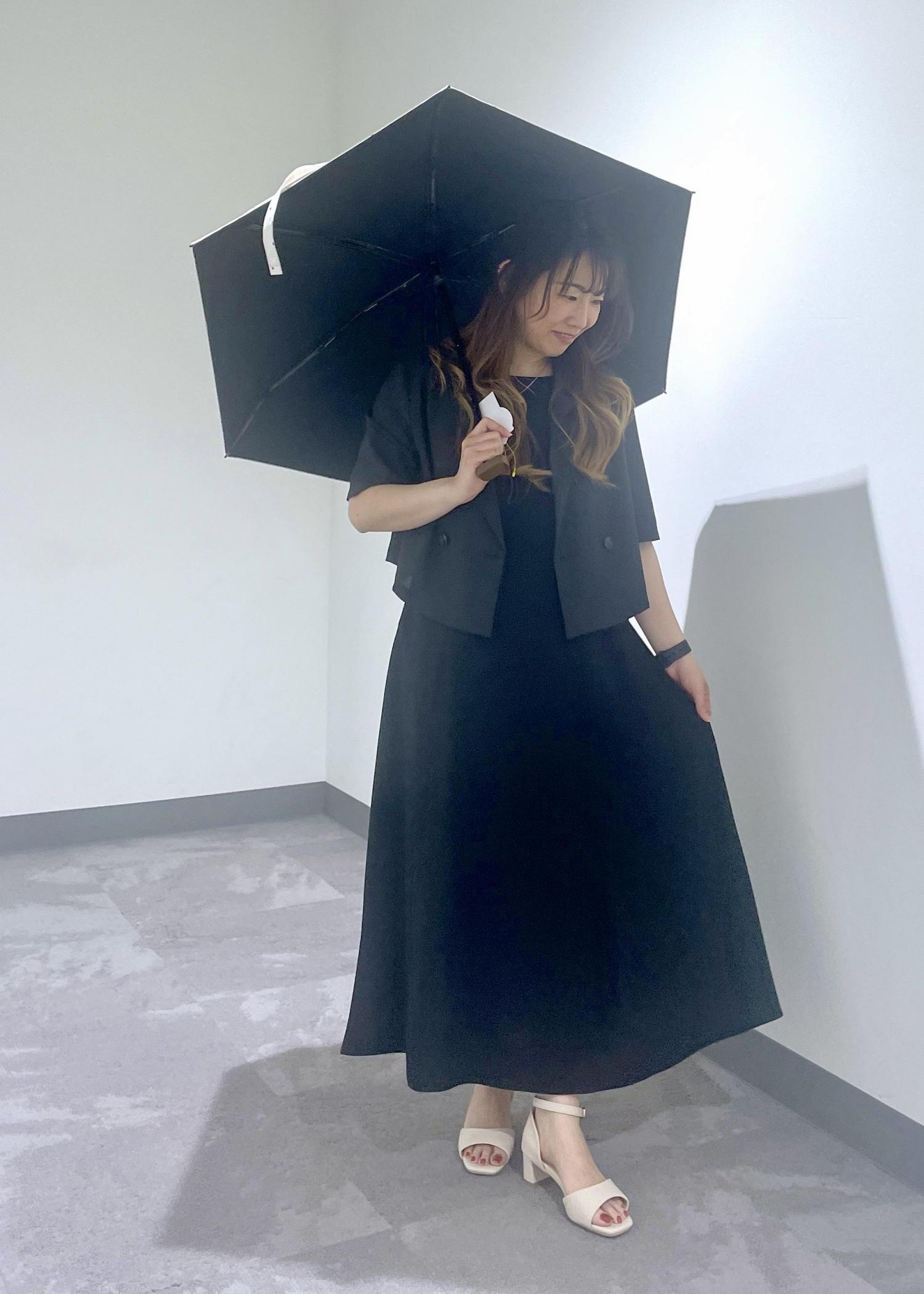 ワンピースに半袖のジャケットを合わせてみました。襟付きジャケットなので、カッコいいワンピーススタイルになりました○