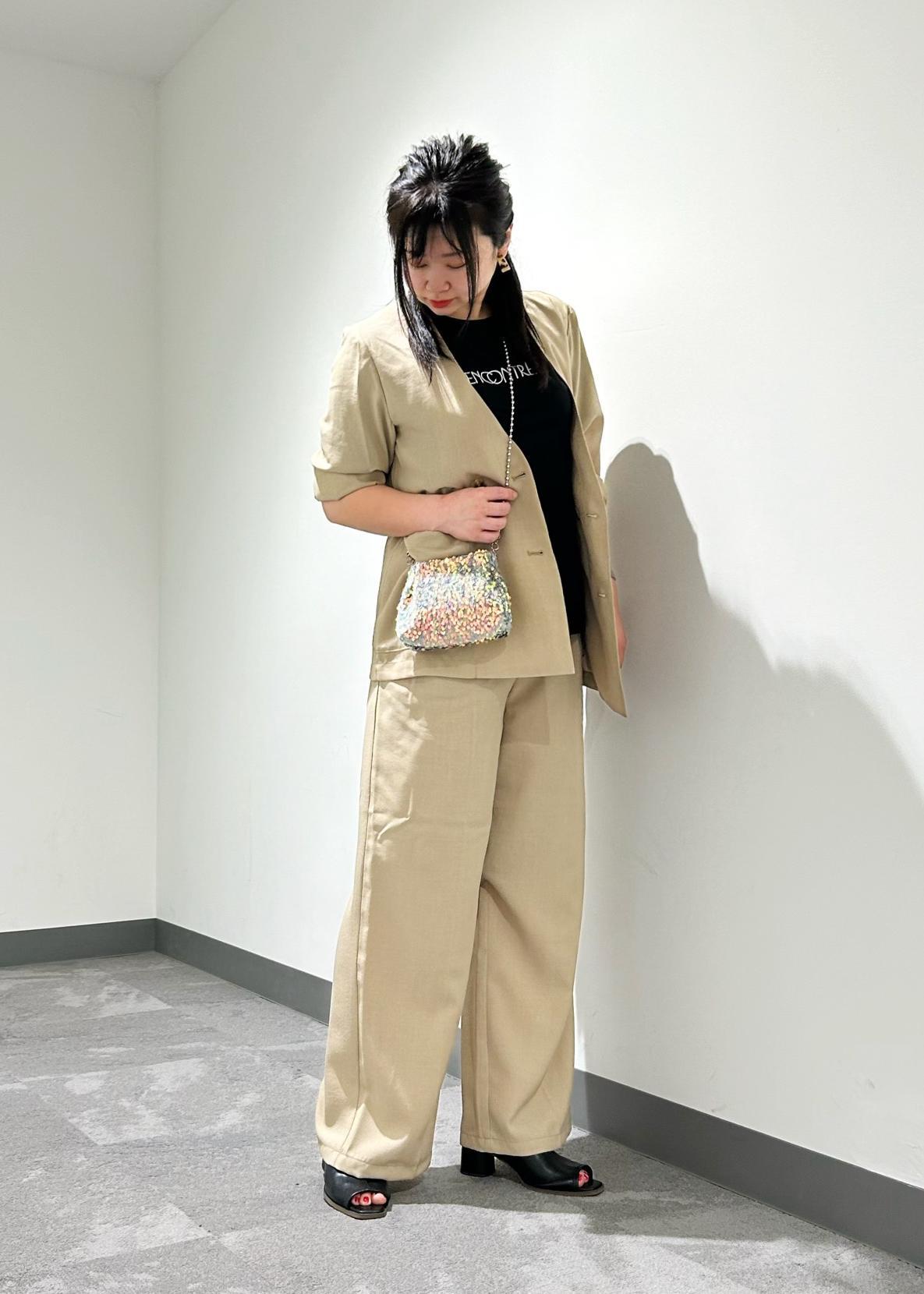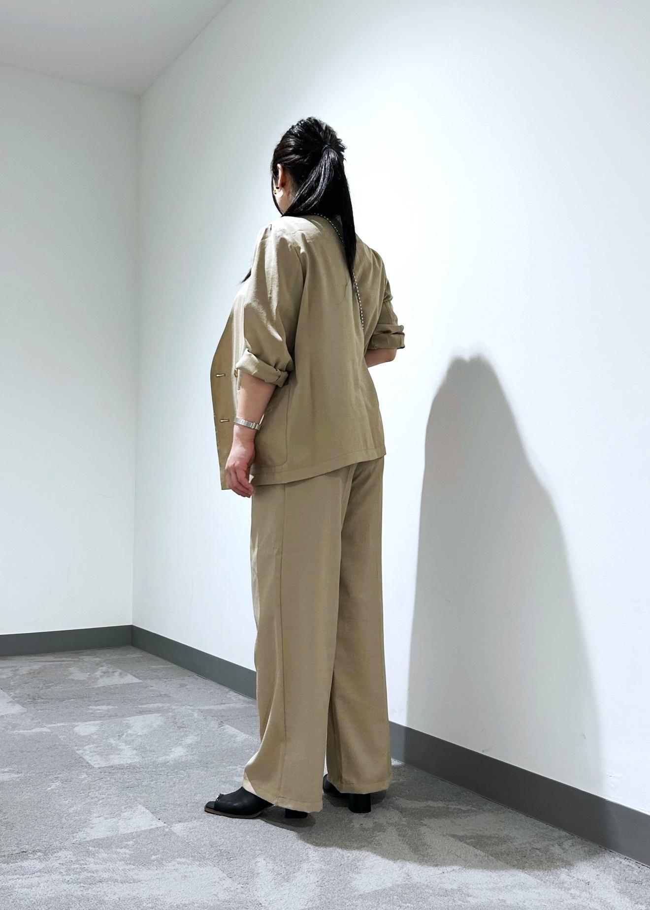 麻調シアー素材のセットアップです。