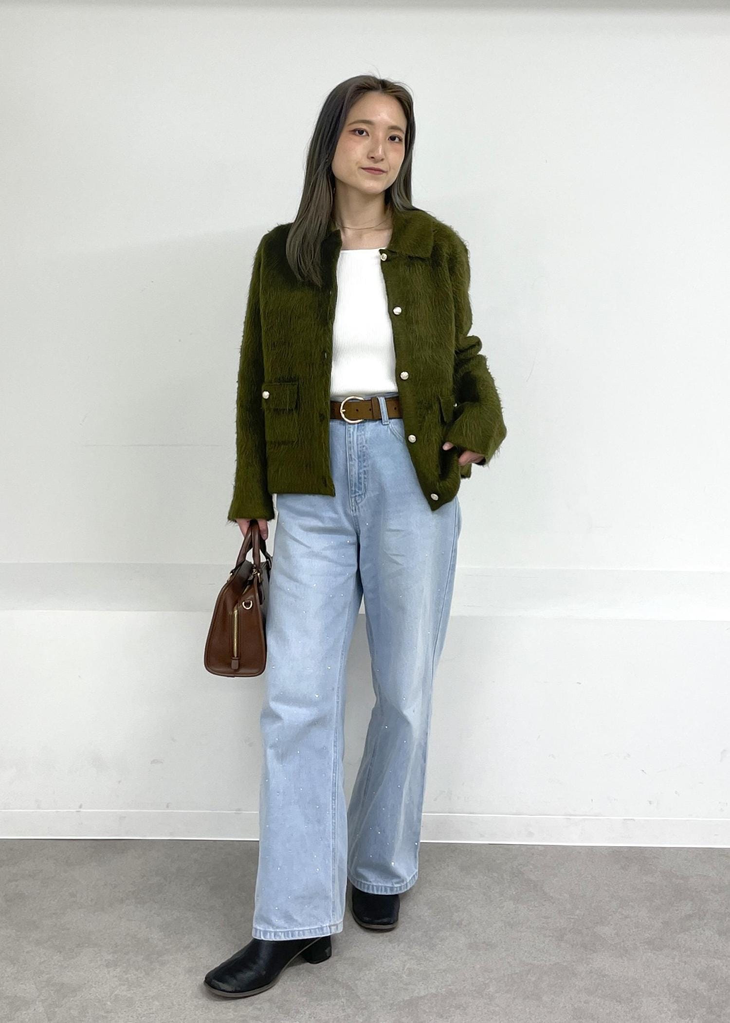 ショート丈でビビッドなカラーが映えるTシャツに、キャップやミニバッグを合わせてスポーティーなコーディネートに仕上げました!綺麗なストレートラインのデニムで女性らしさもプラスされています♡