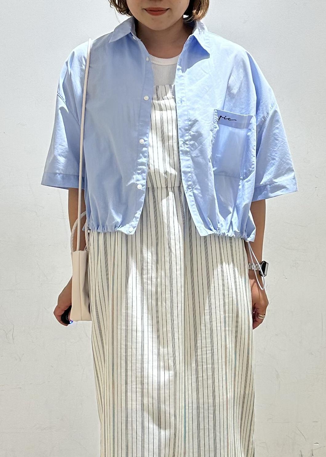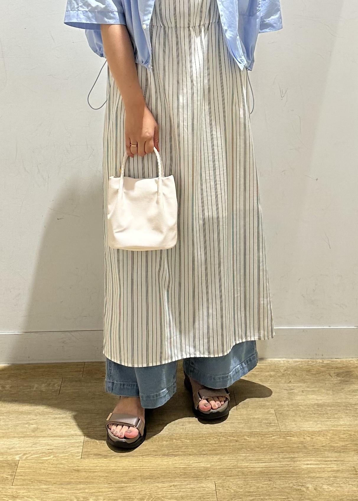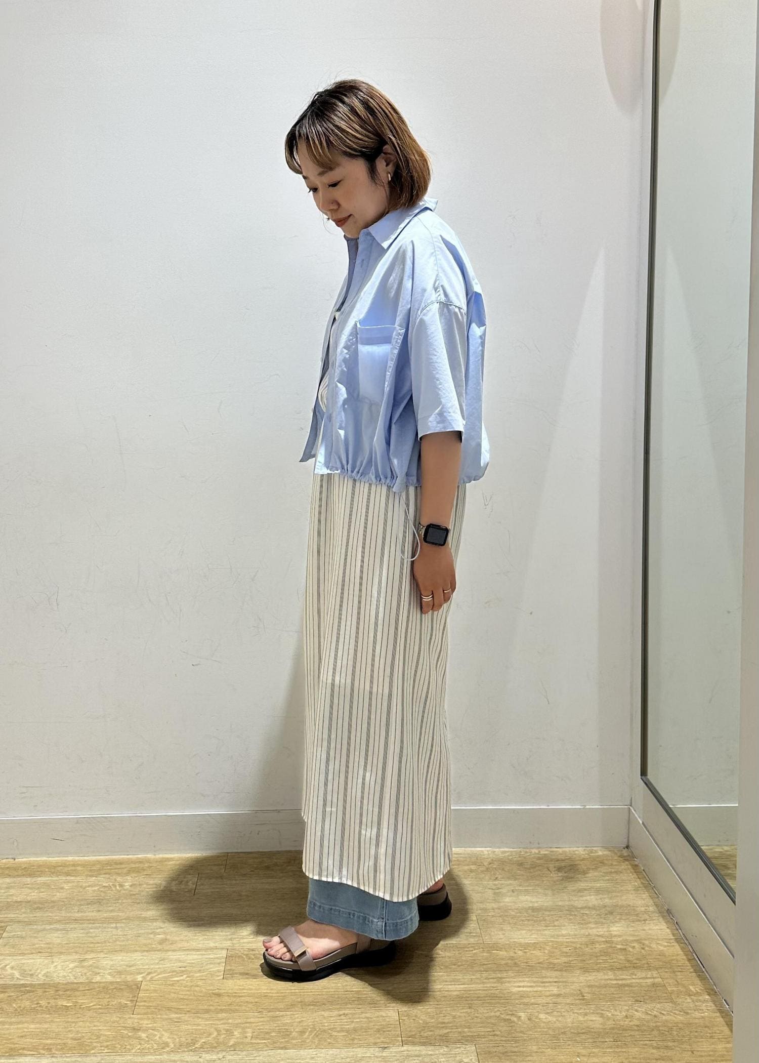 夏らしいストライプのワンピースをデニムやブルーのシャツと合わせてカジュアルに着てみました!