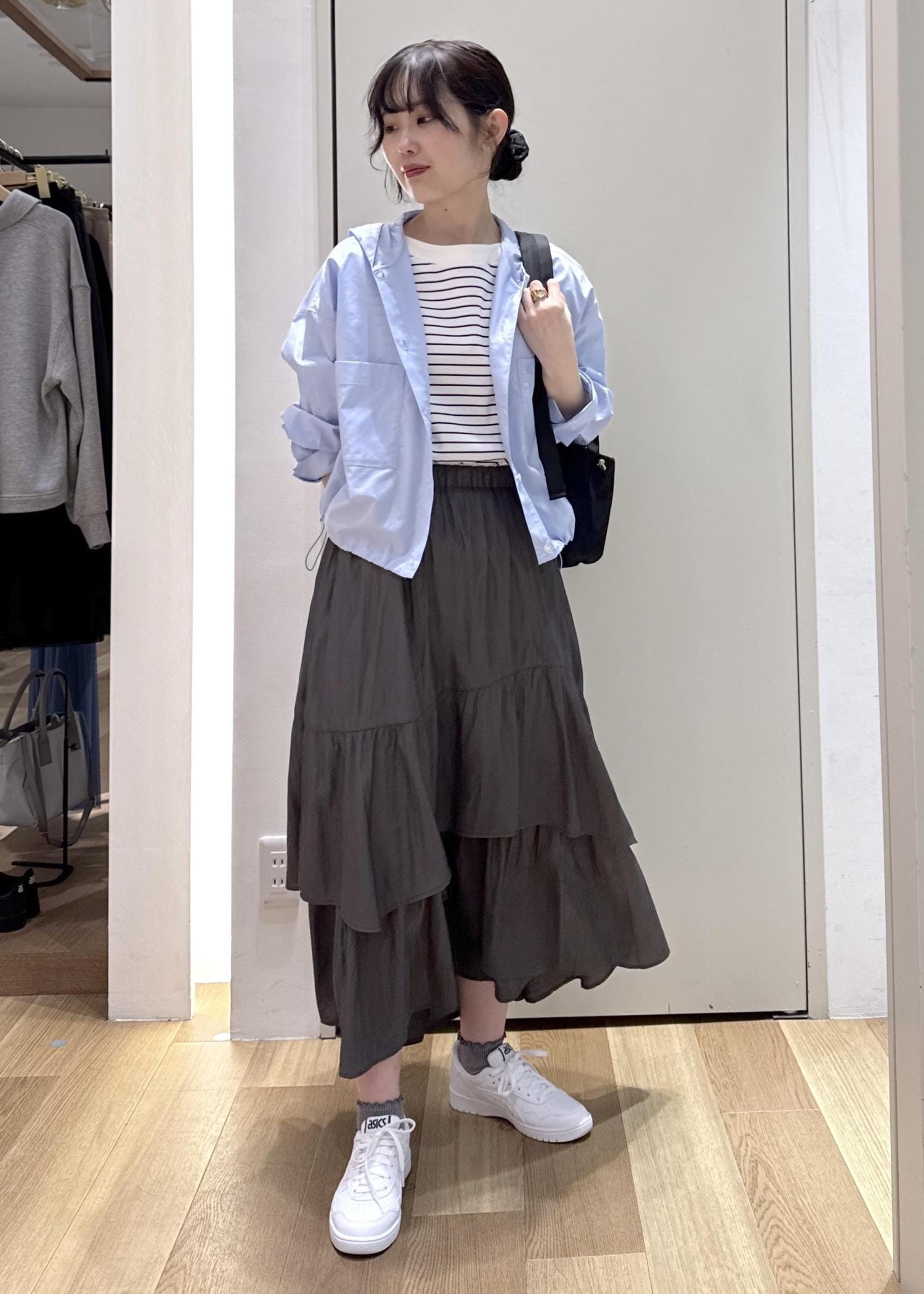 そこにチュールのワンピースを合わせキレイめ要素もプラスしました。