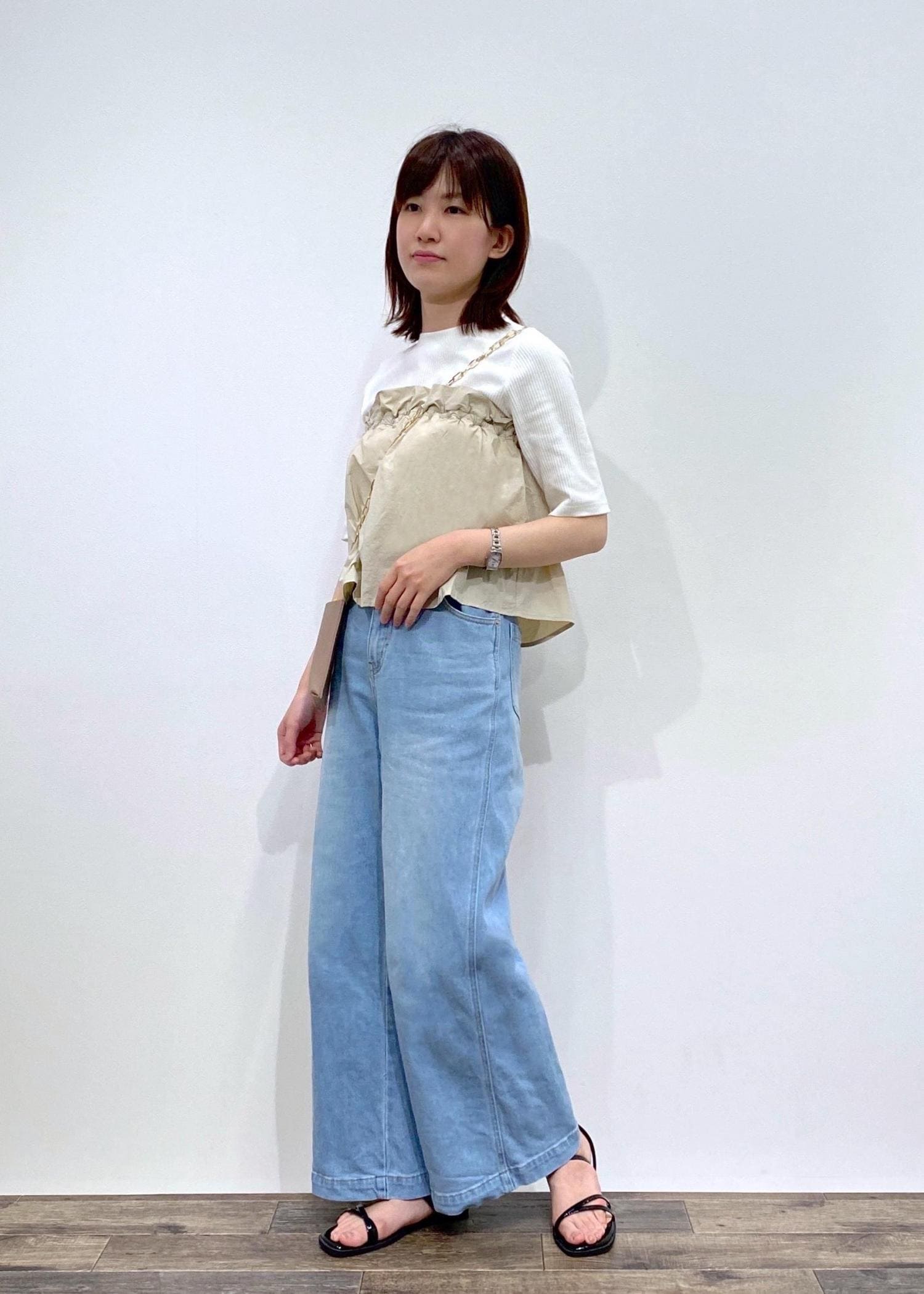 アウトレットROPÉ PICNIC【ウエスト革命デニム】ウエストシェイプデニムワイドパンツサックス / 36¥2,966レビュー36サイズでぴったり、38サイズだとウエスト周りの締め付けに少し余裕を感じました。ウエスト内側にゴムが内蔵されているためタックインでも下腹部のぽっこりがやや気になりにくく感じました。