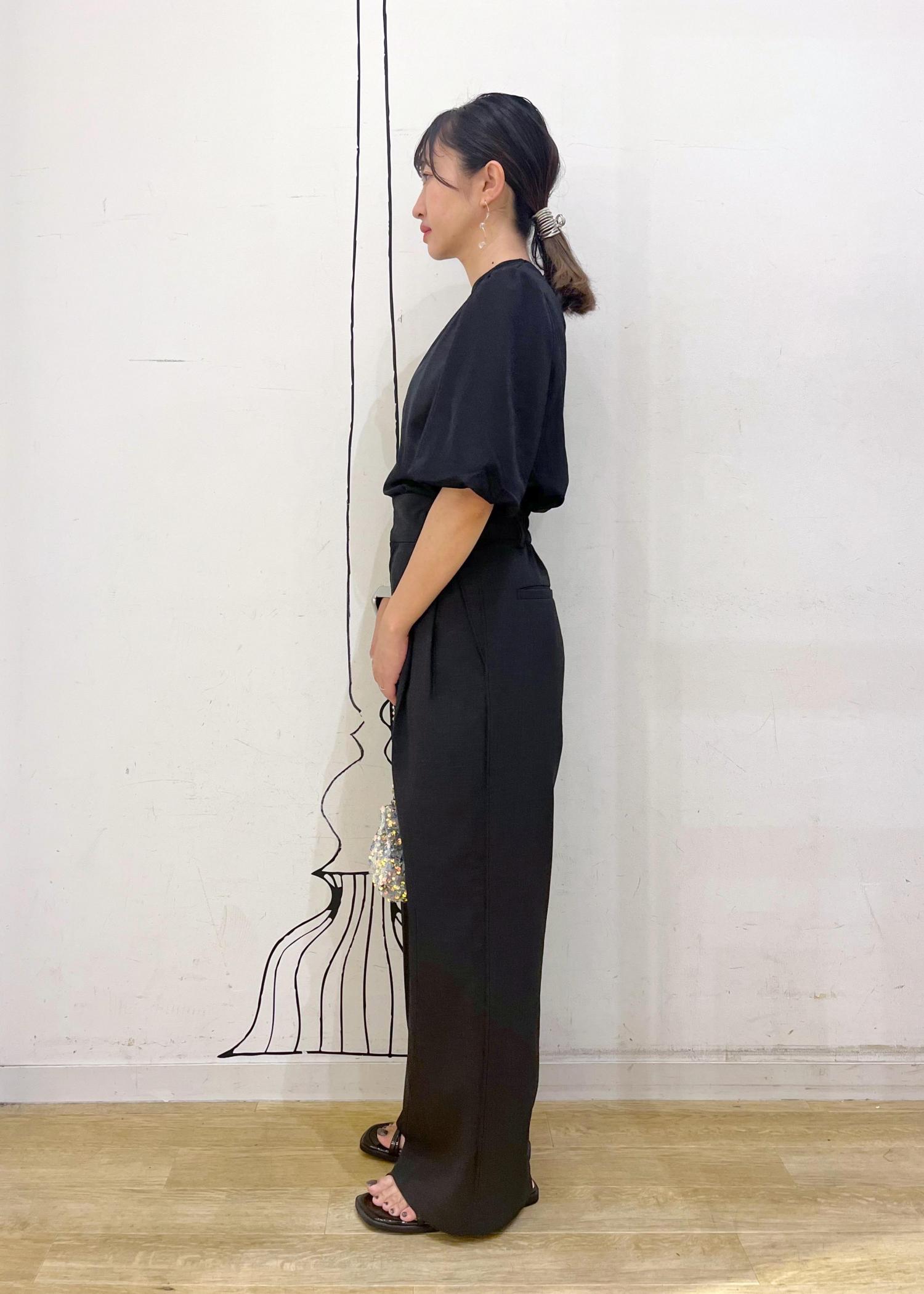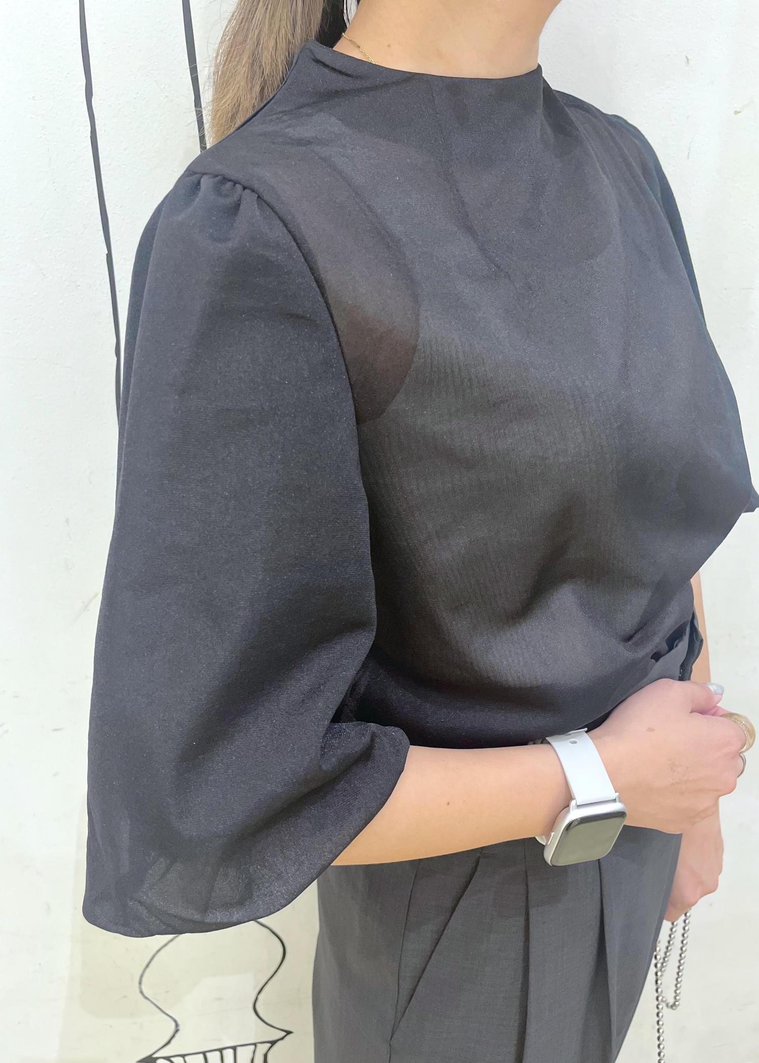 シアー感のあるトップスにあえてインナーを明るい色にすることでオールブラックコーデも重たくなりすぎず着回せます◎